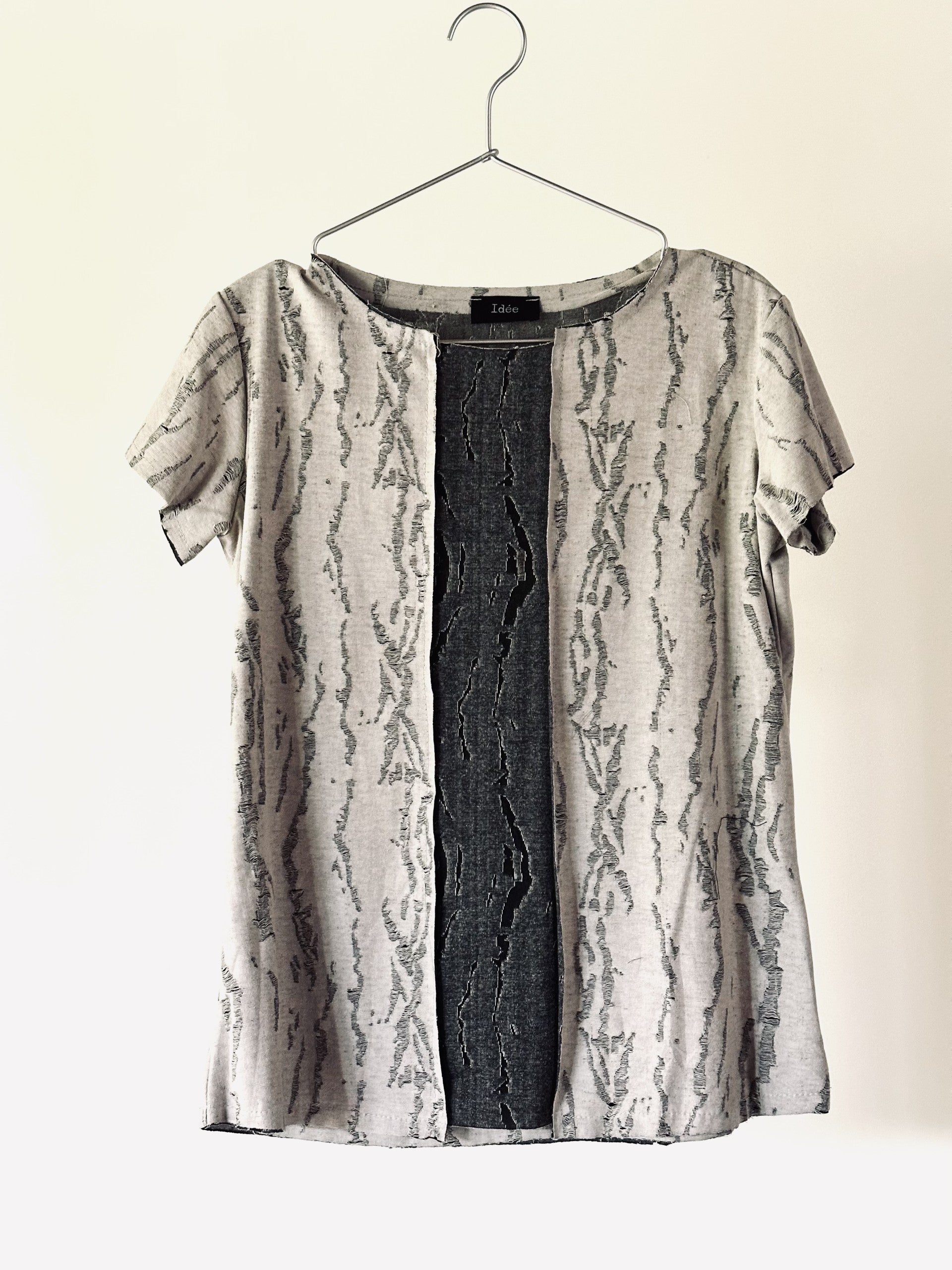 - Crafted from specially treated " burnt" cotton japanese knit for a distinctive texture.