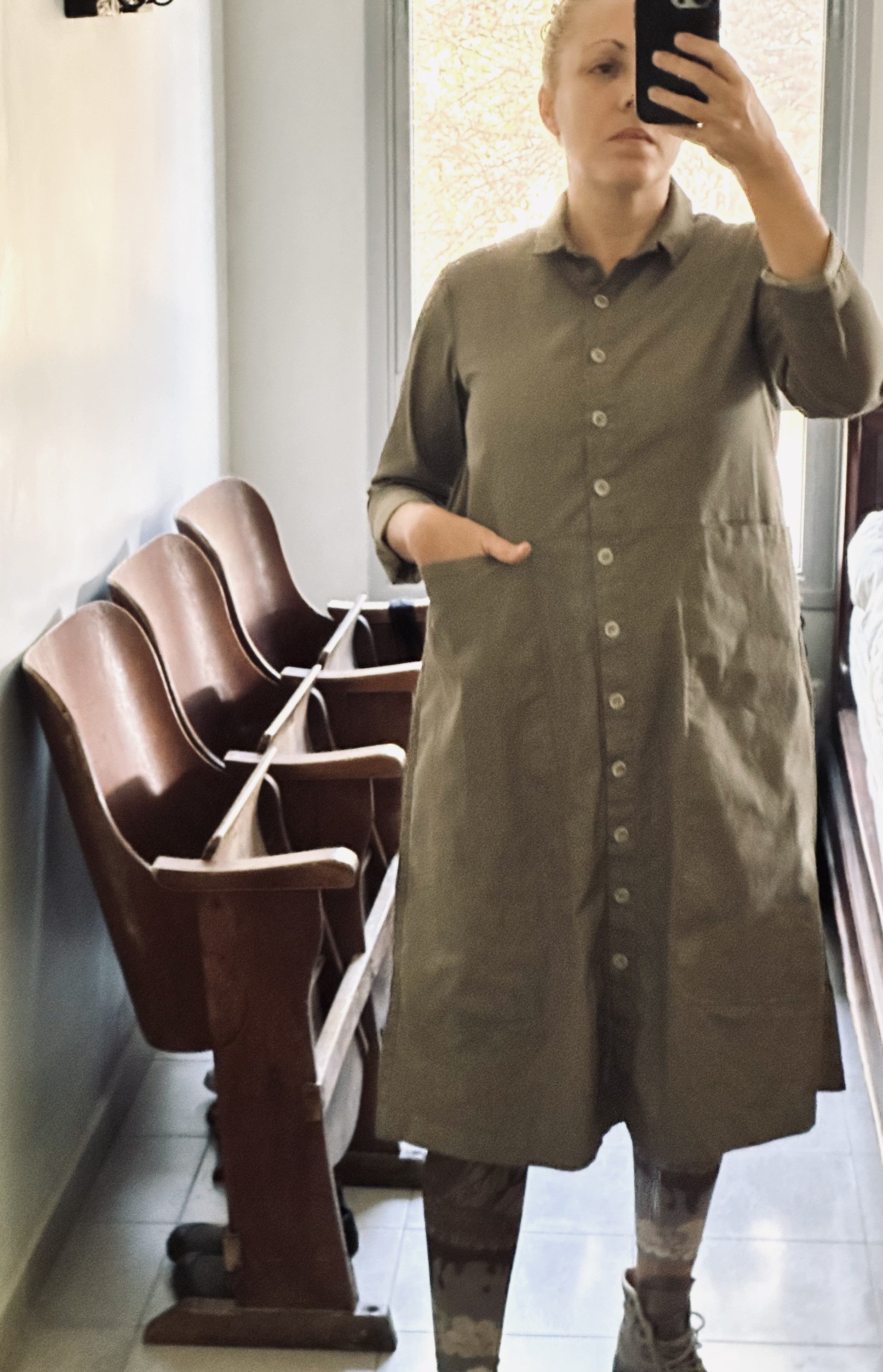 Multi purpose piece, can be worn as a dress or as lightweight long jacket.