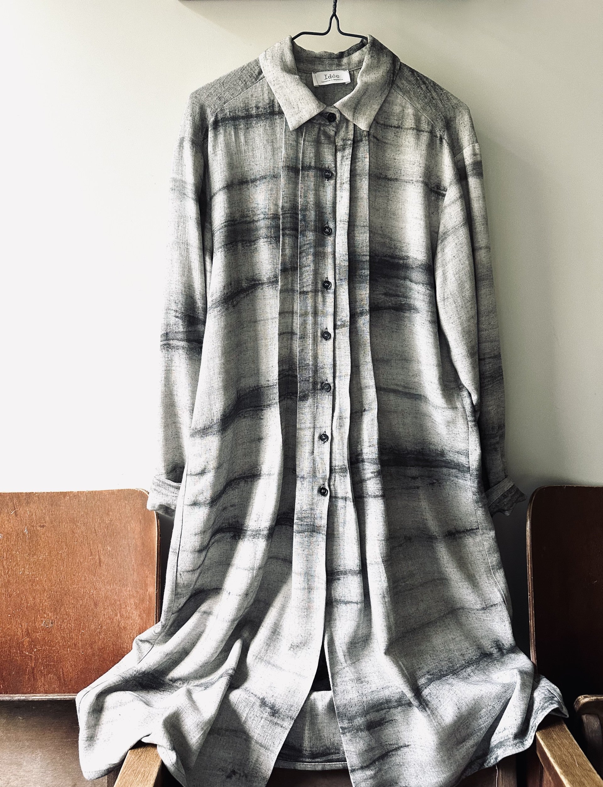 This shirt dress is a signature piece in the idee collection, quite, naturally textured and effortlessly wearable with its thoughtful detailing and gentle structure it offers versatile elegance.