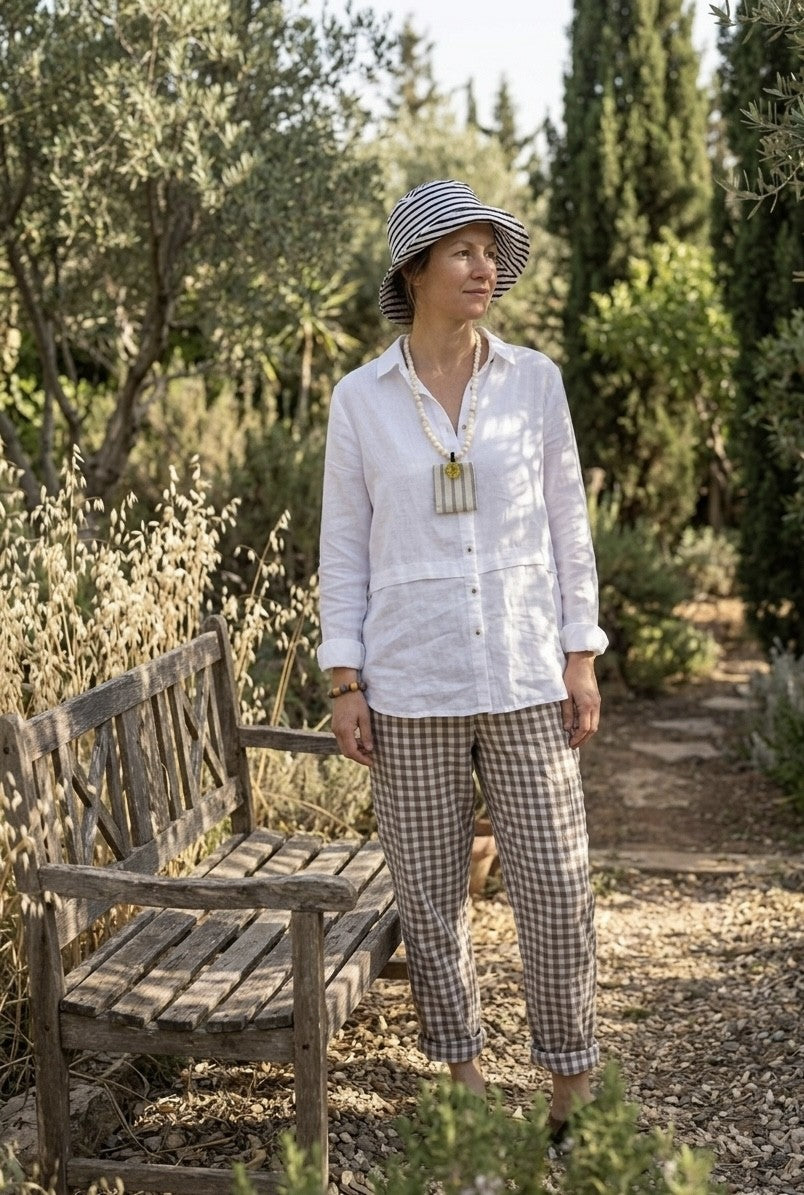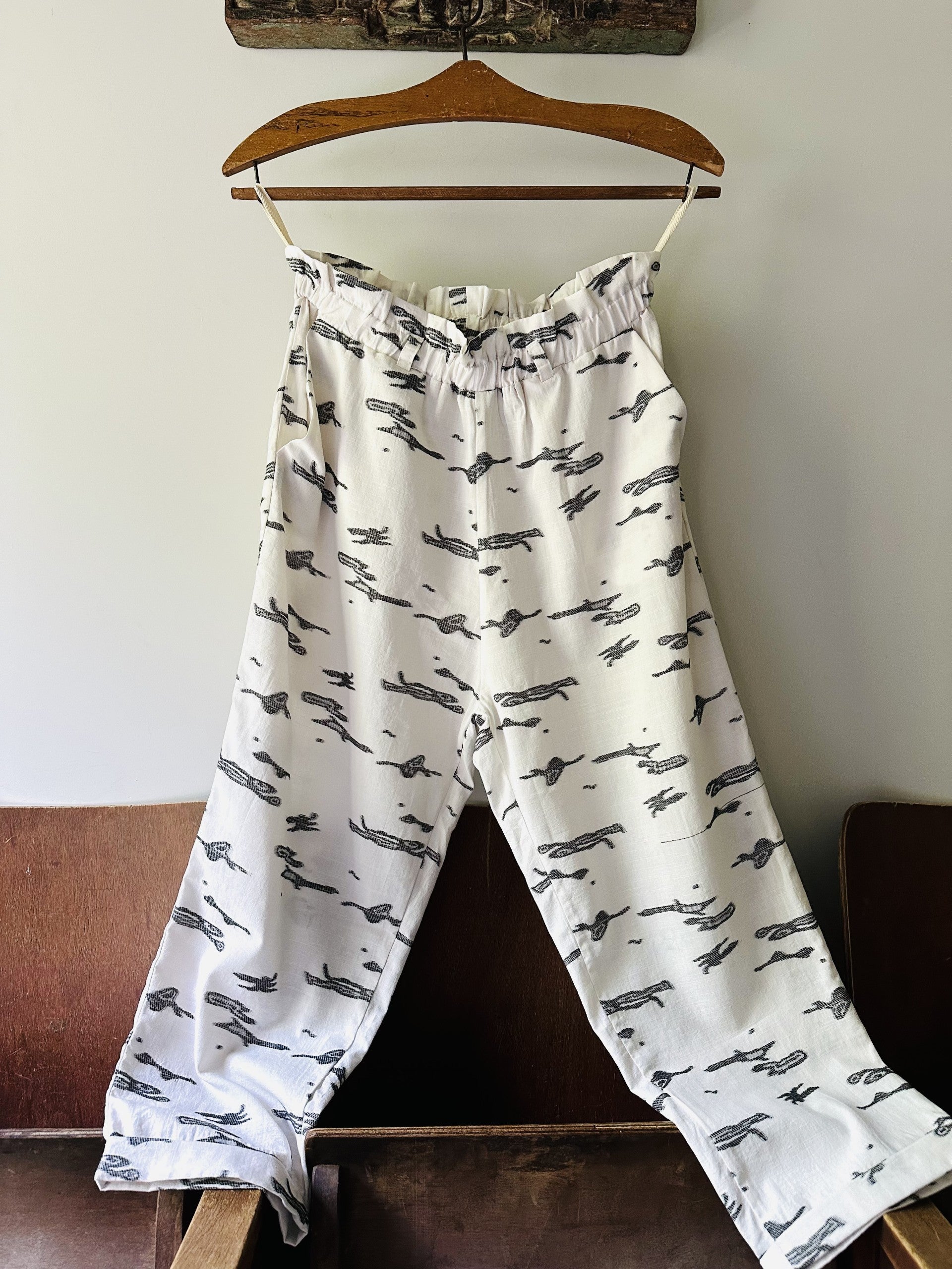 Relaxed, comfortable pair of pants for day-to-day use made from soft natural material, cool nonchalant look.