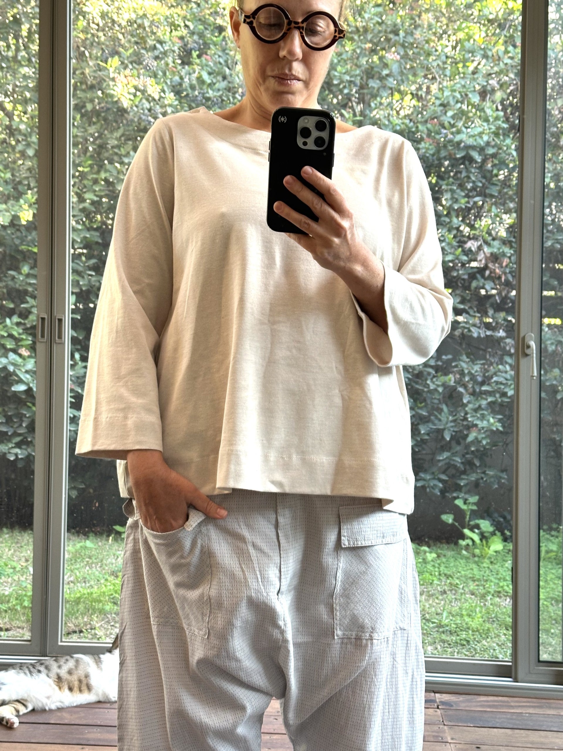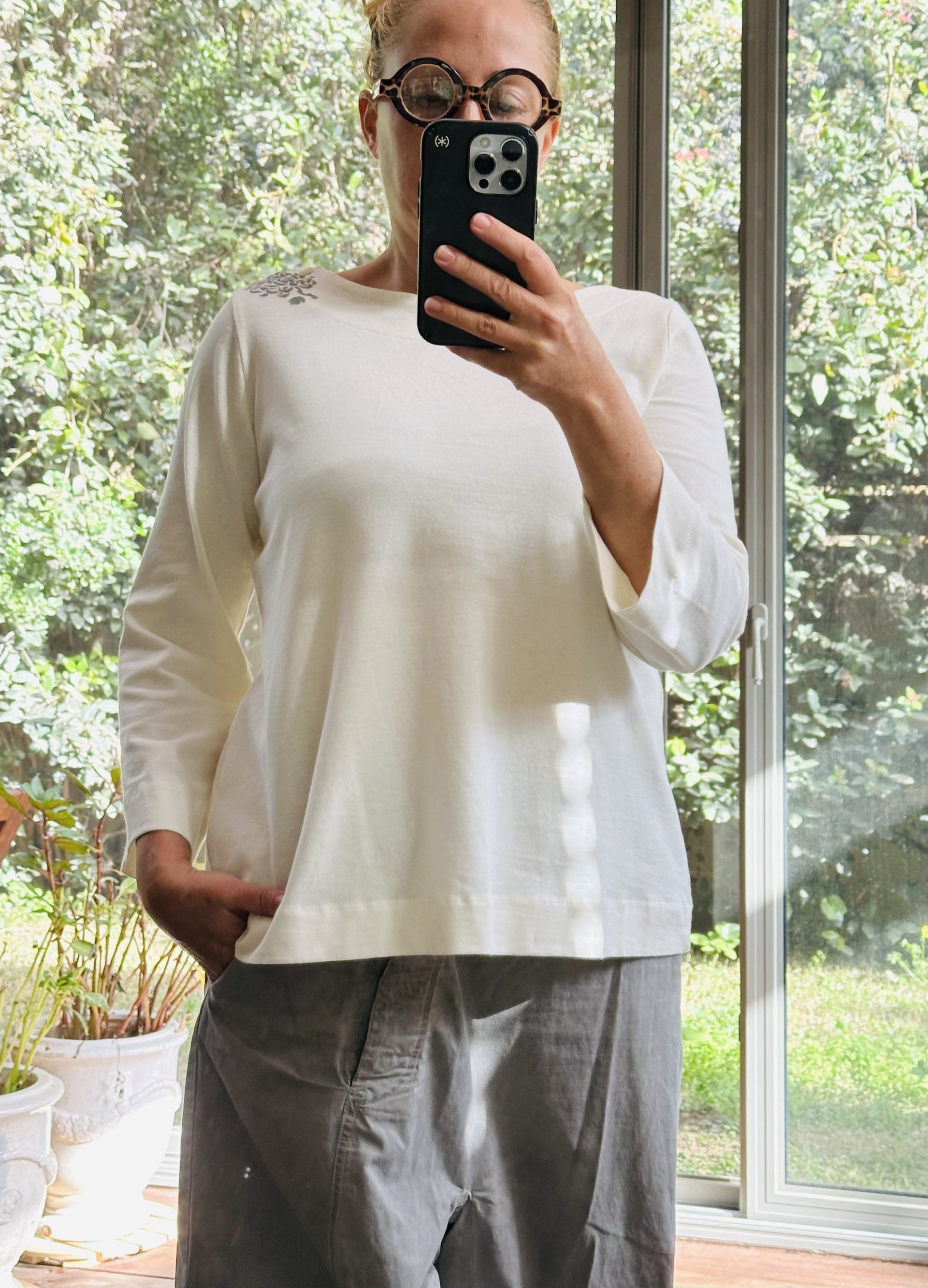 This T-Shirt has that " lived-in" softness that usually takes years to achieve, combined with a shape of elegance.