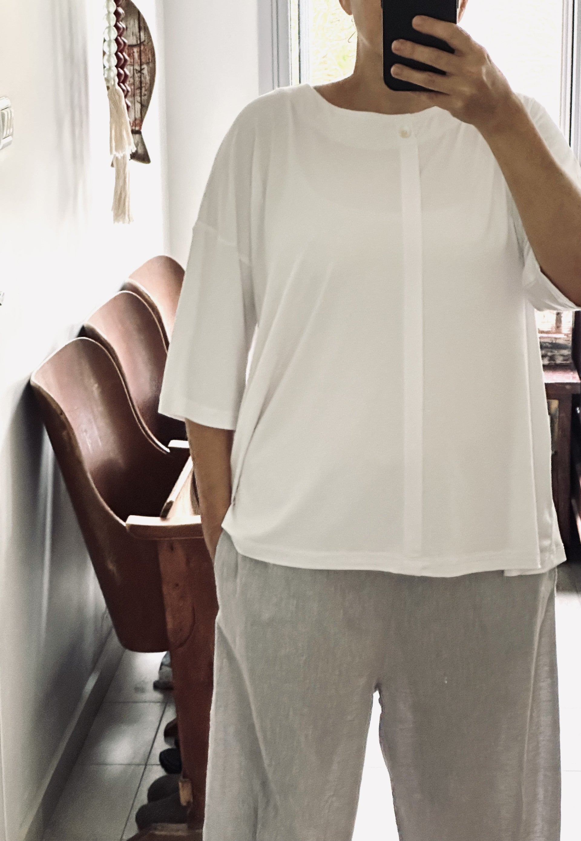 - Relaxed one-size T-Shirt with a soft, fluid square cut.