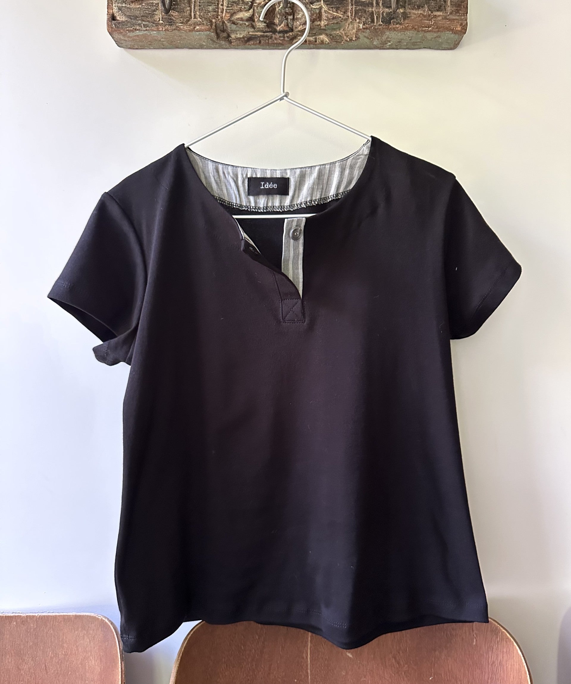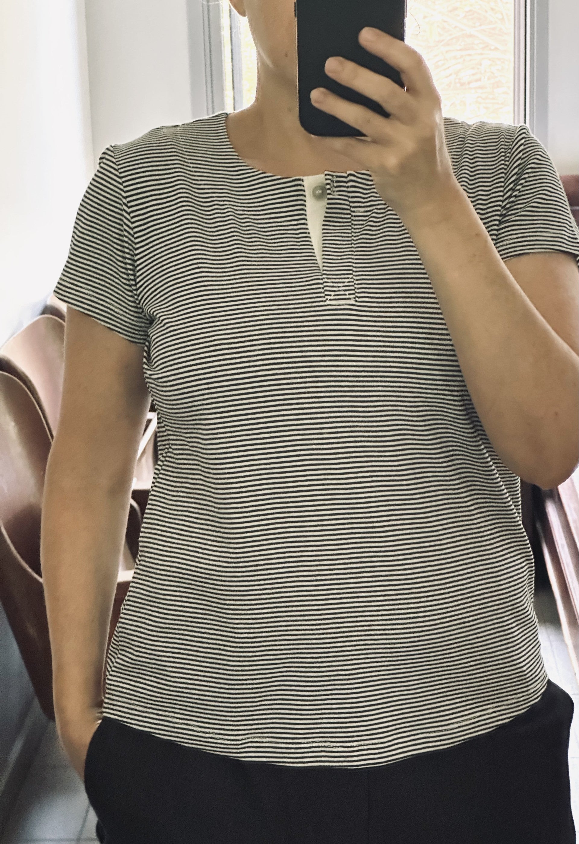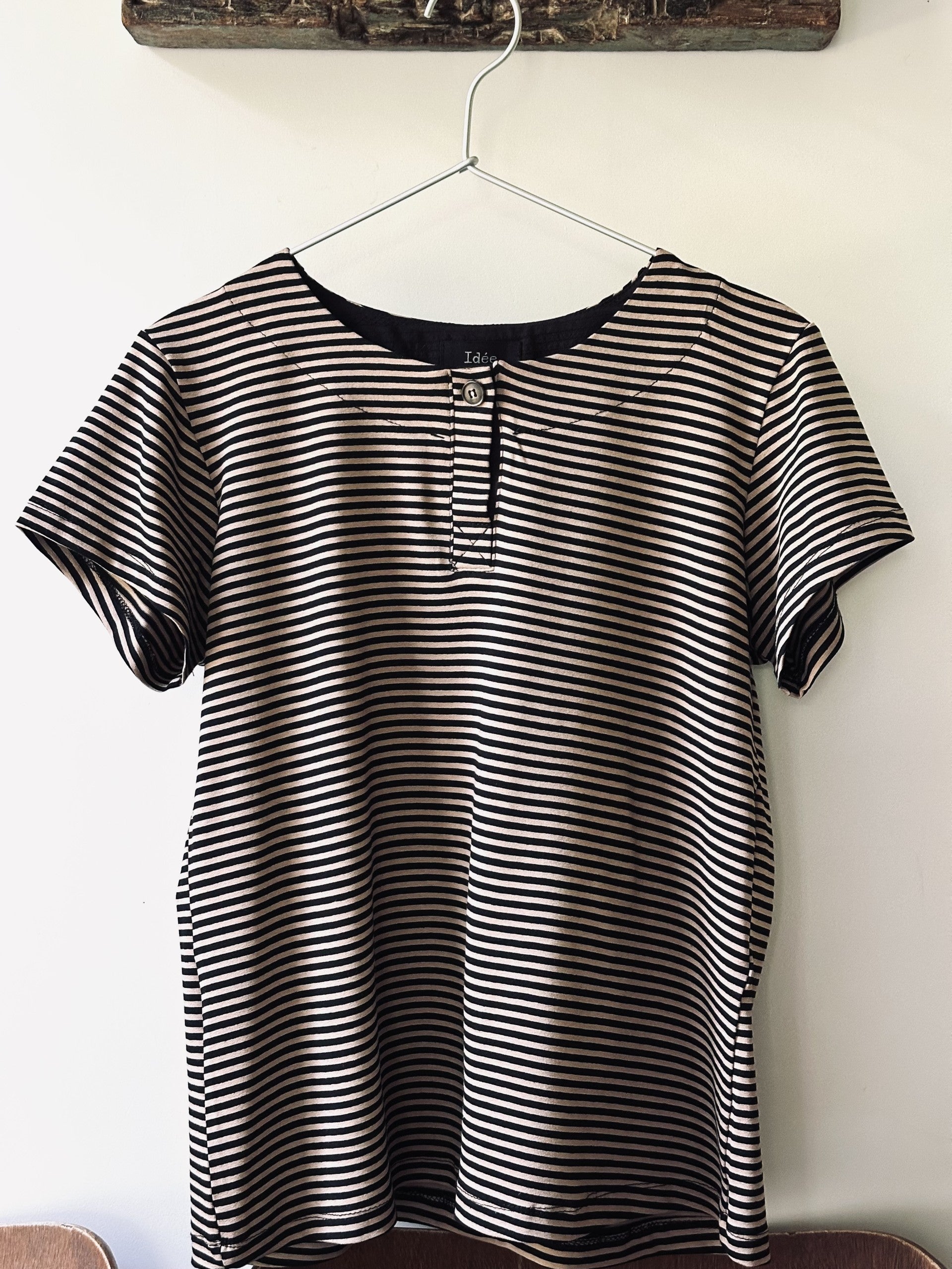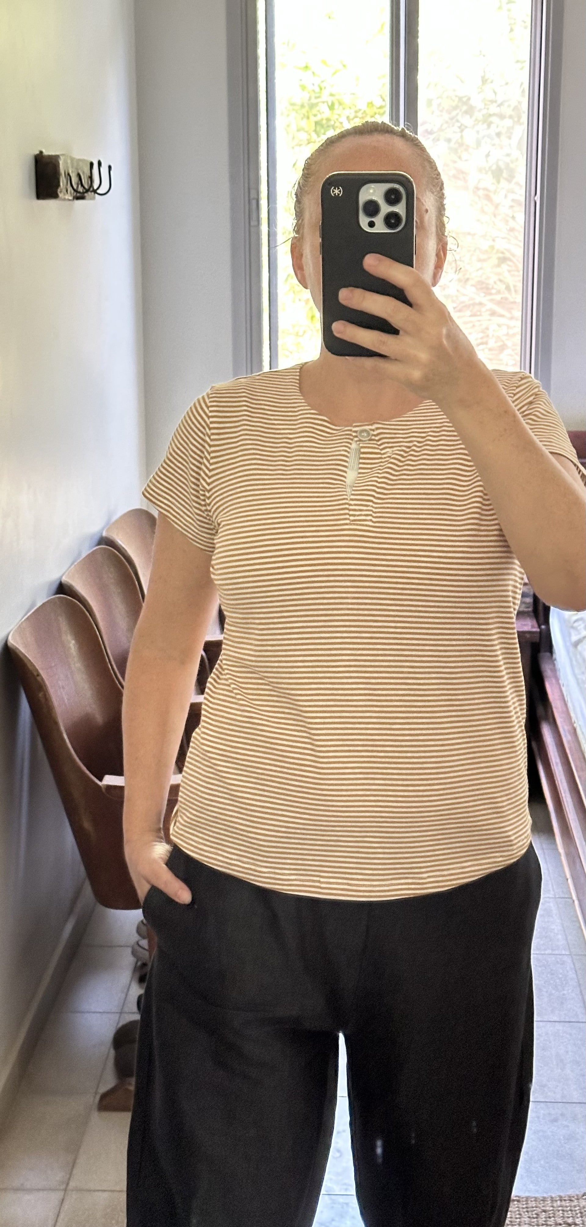 Cream and mustard pin stripes: 97% viscose 3% lycra