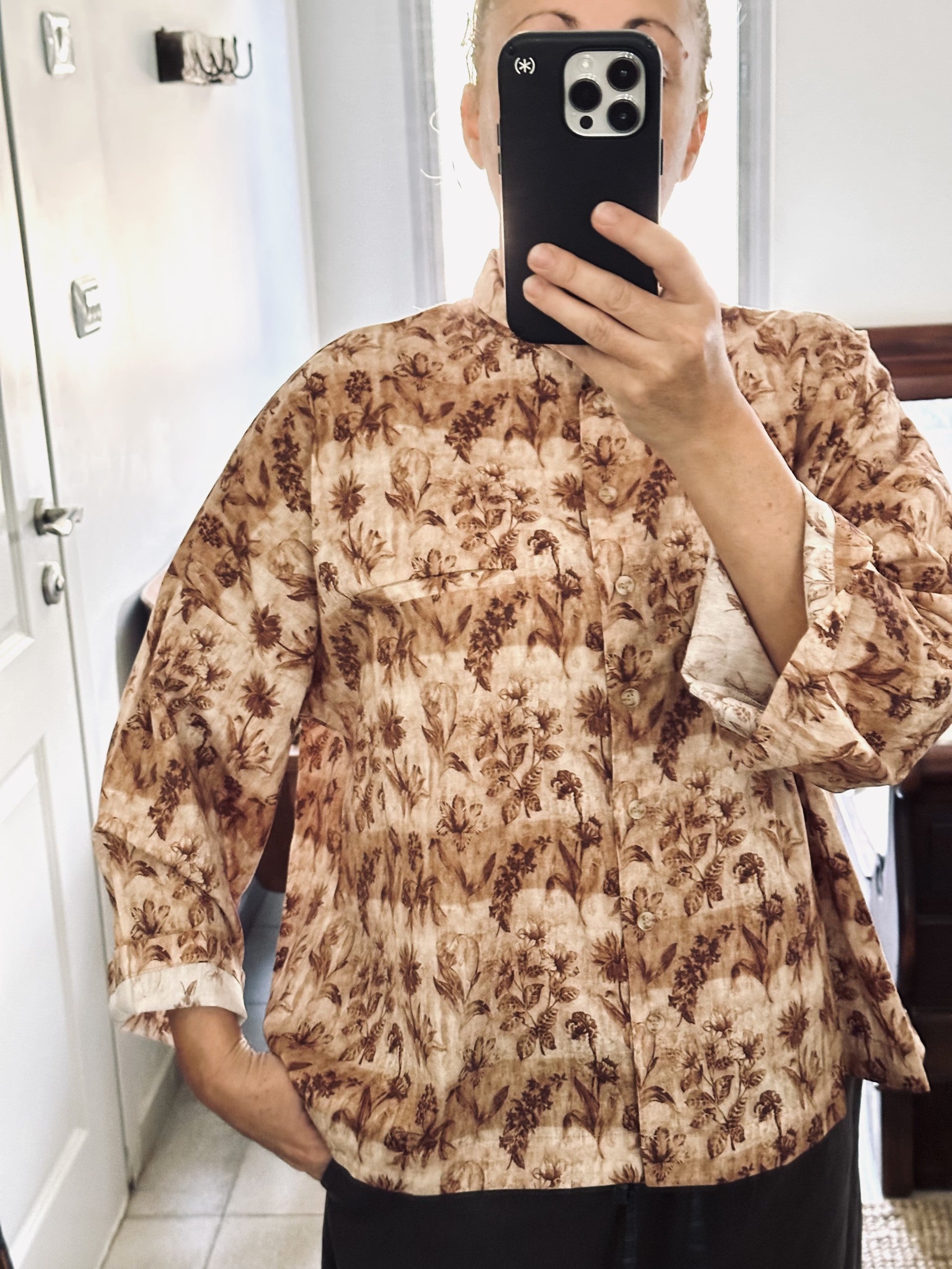 Relaxed blouse in a unique cut, made from high-end cotton yarn in a floral hand print.