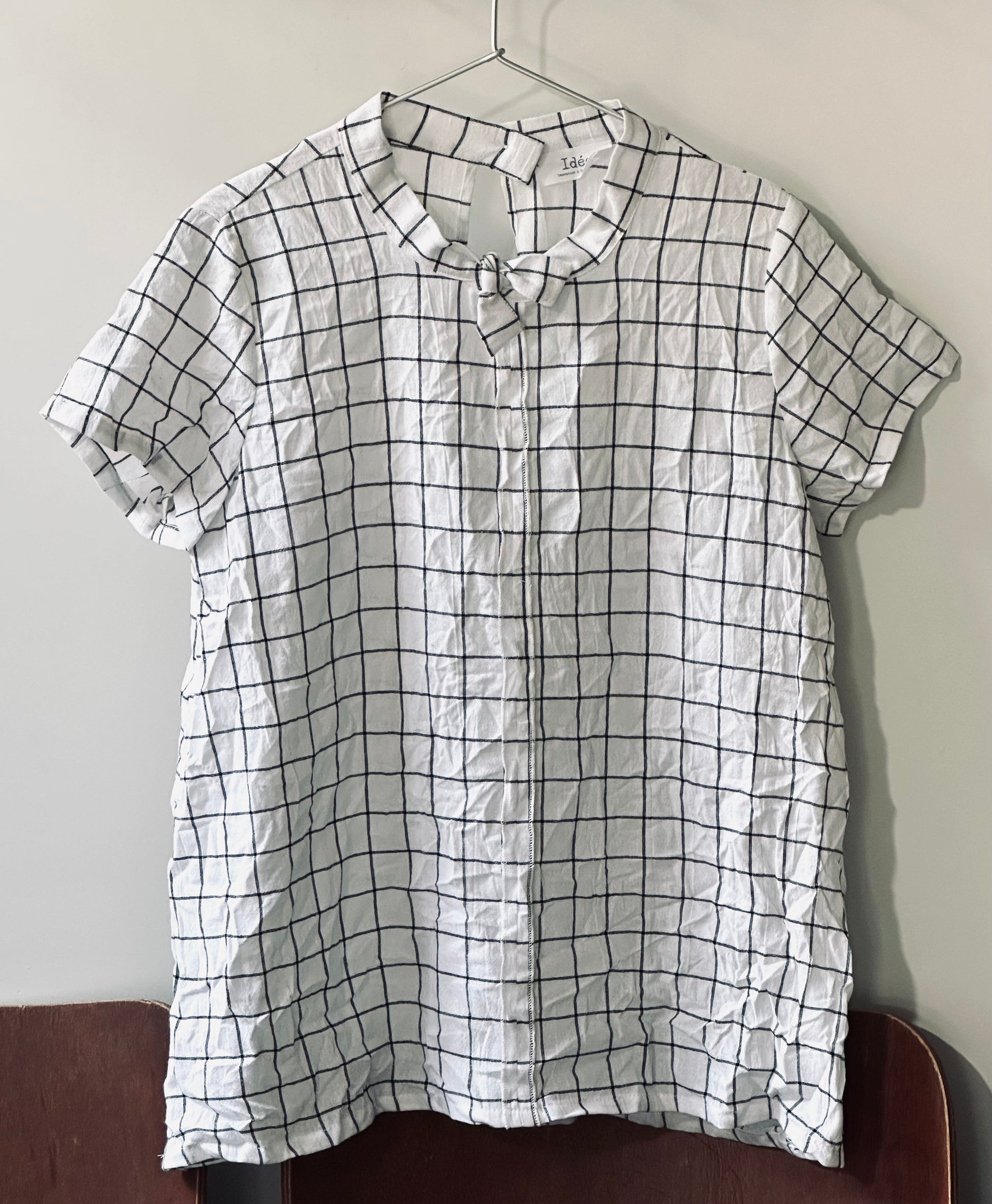 - Features a delicate front pleat and a small tie detail at the neck line ending, adding charm and smart elegance.