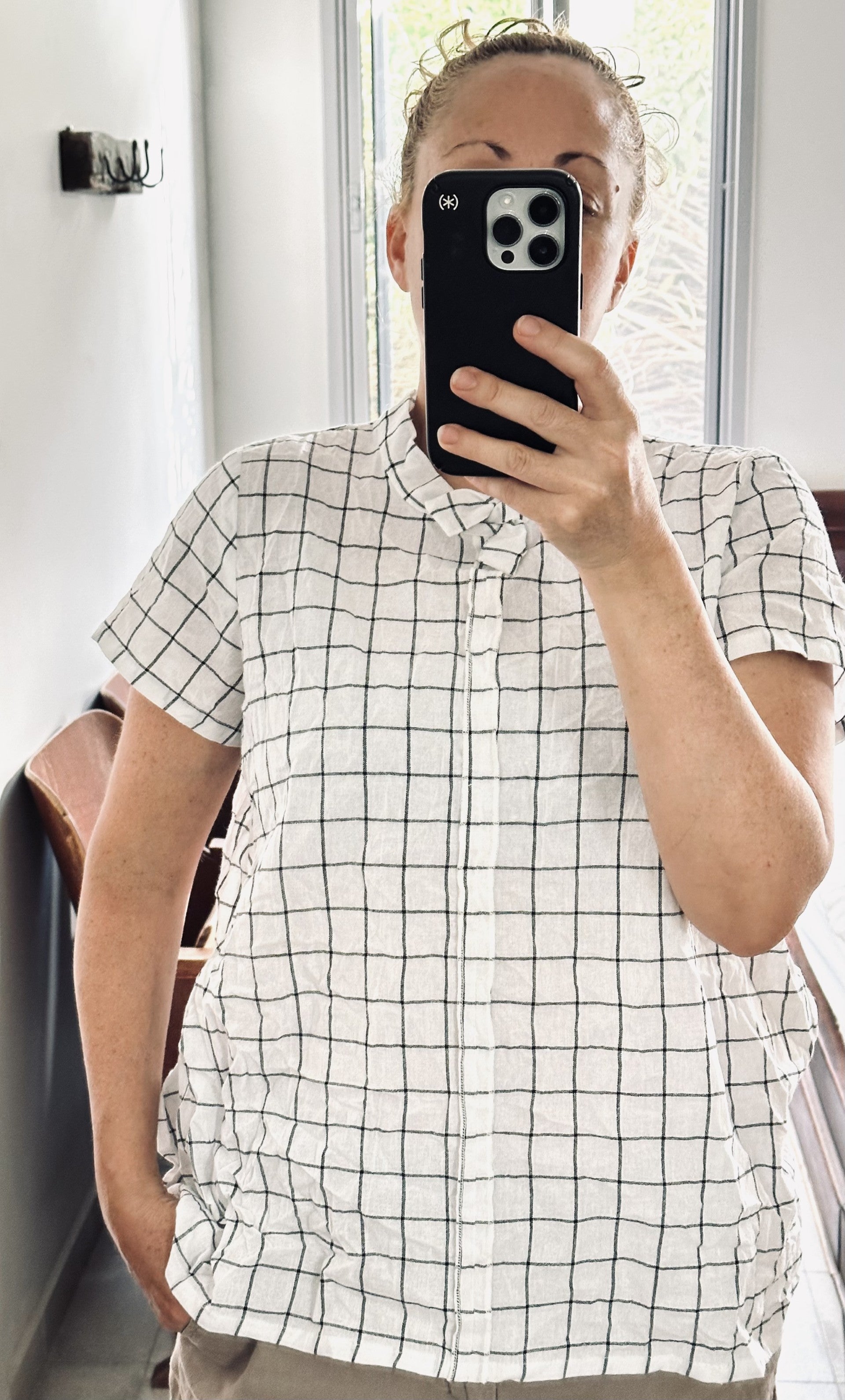 - Trapezoid shaped blouse, made from soft natural, breathable fabrics, gentele on the skin and perfect for warm weather.
