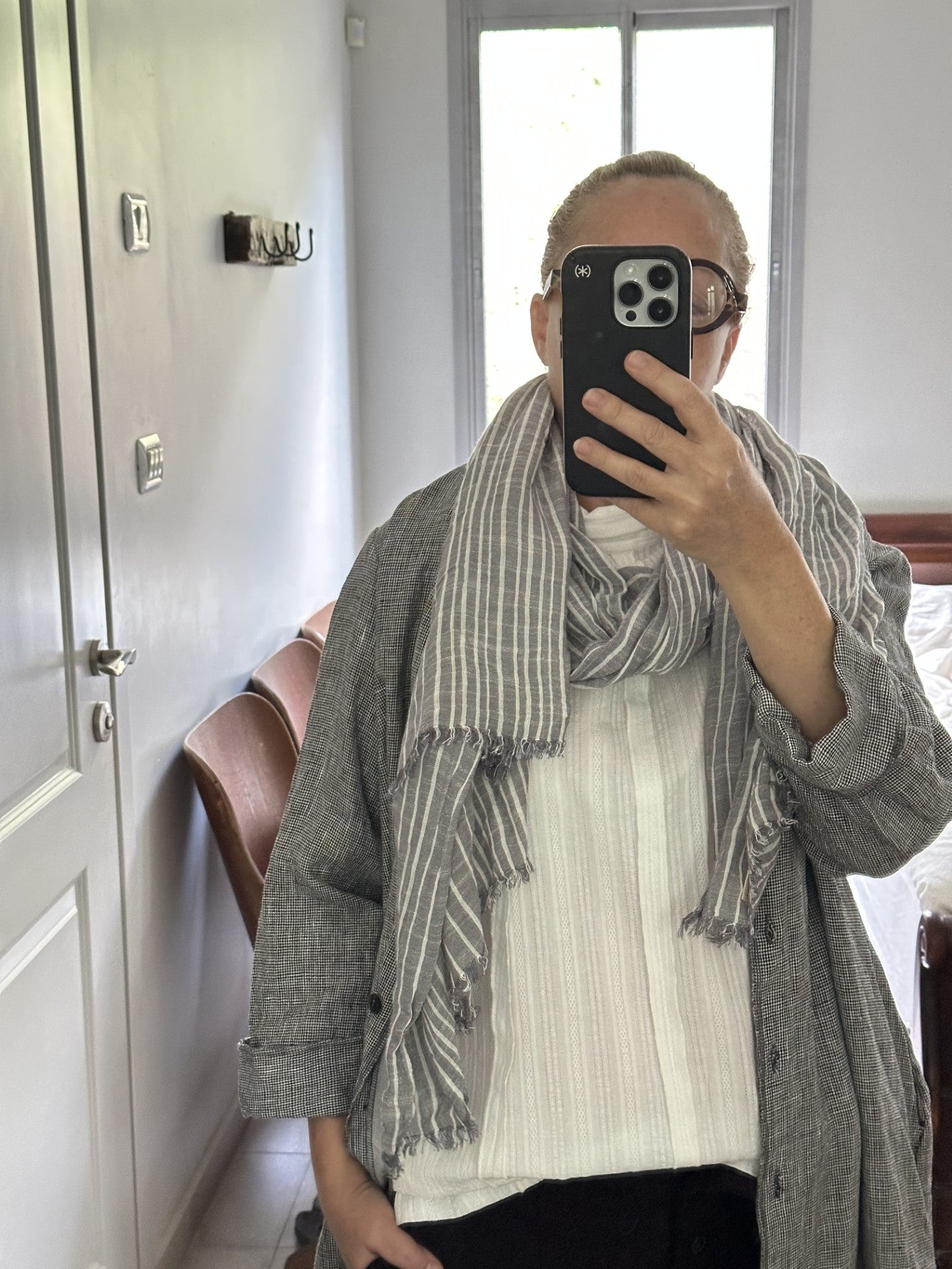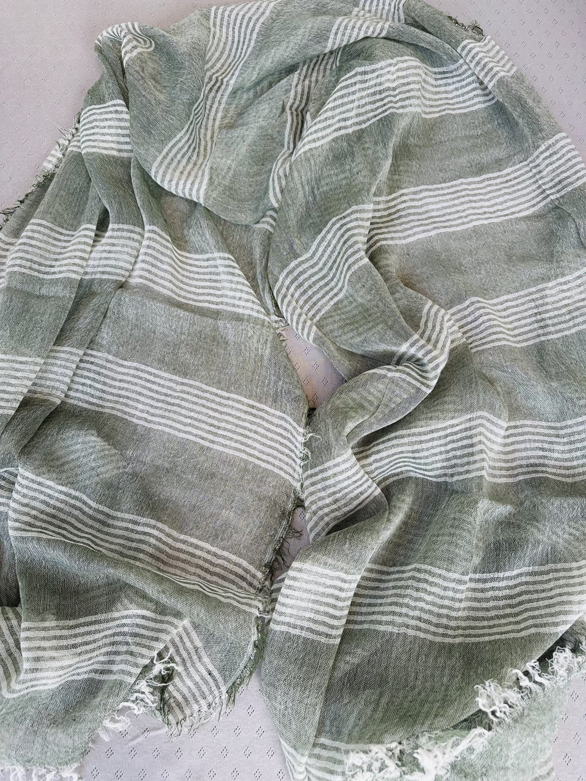 Khaki and grey stripes: 100% cotton gauze