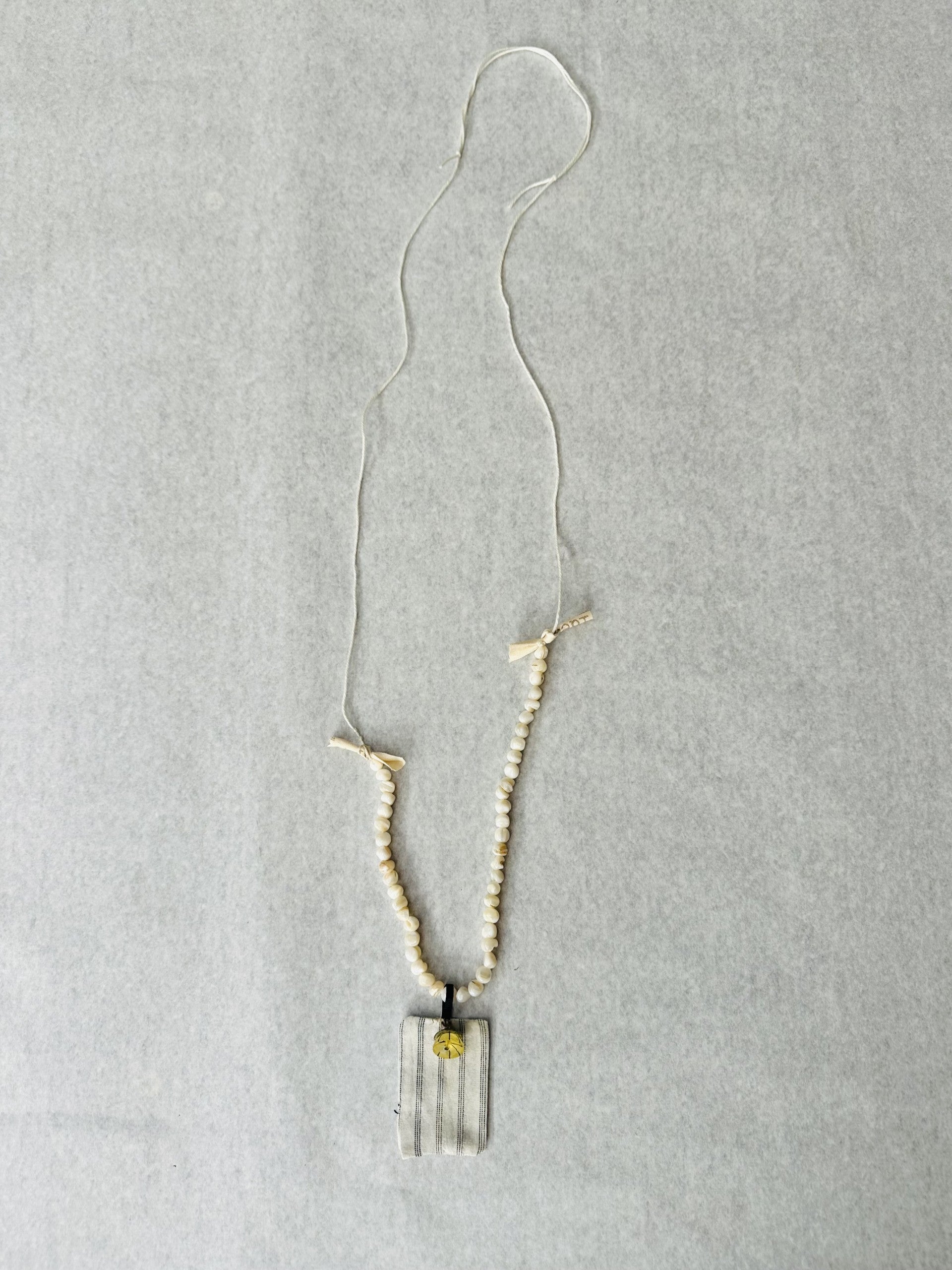 - made from natural beads and a cotton textured material.
