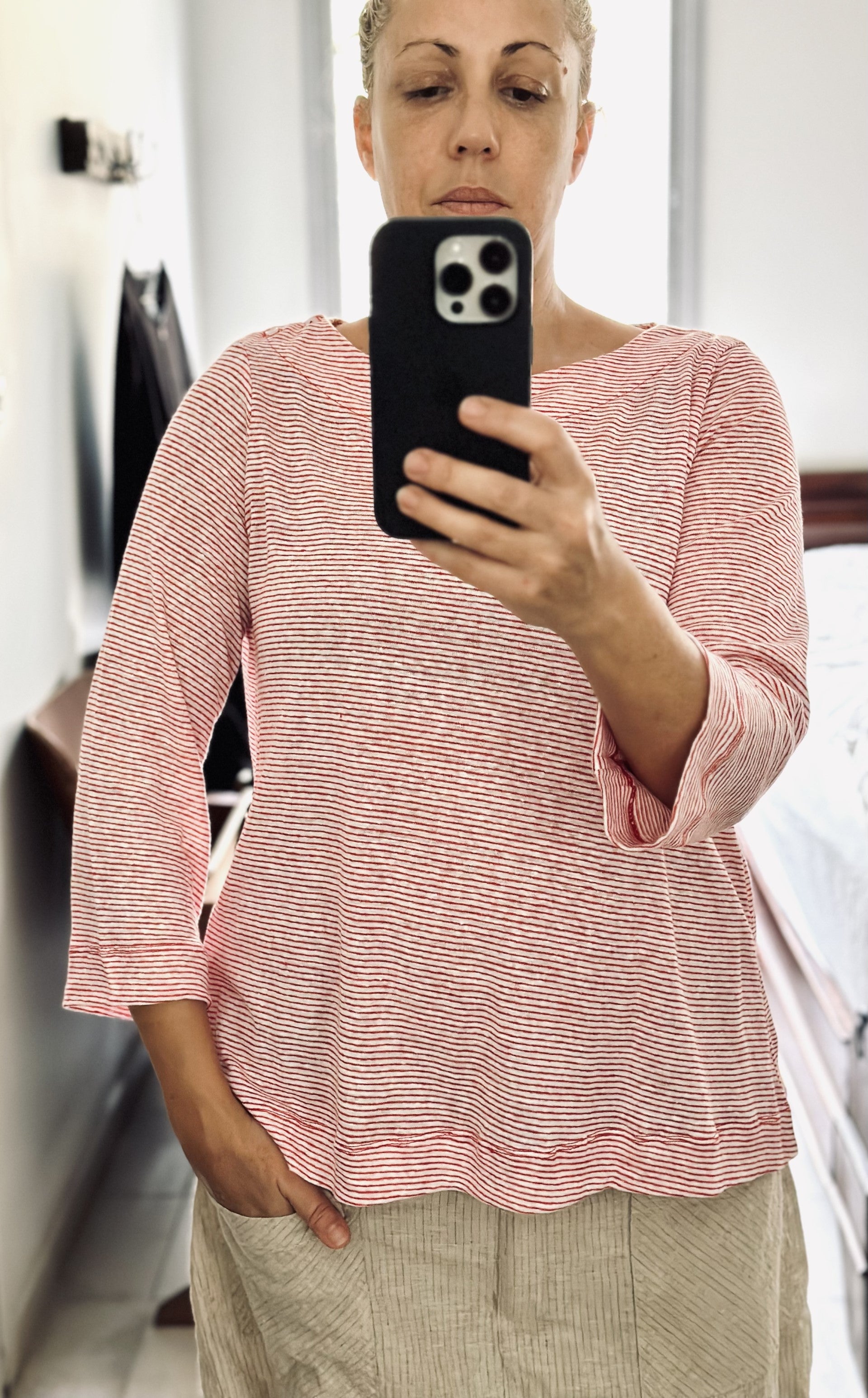 חולצת טי -שירט בסיסית עם זאת עשויה ומוקפדת , עשויה מחומרים רכים טבעיים.