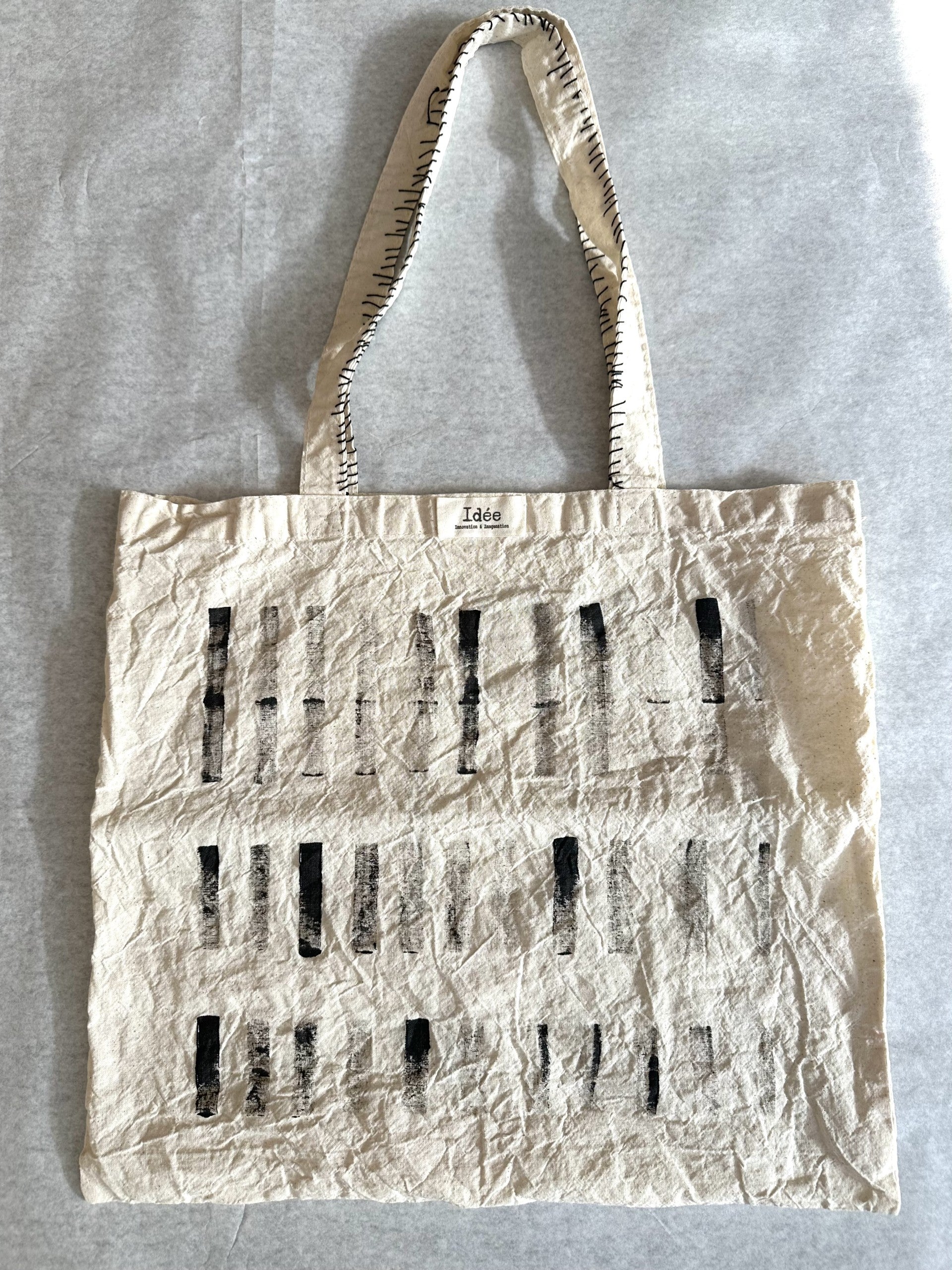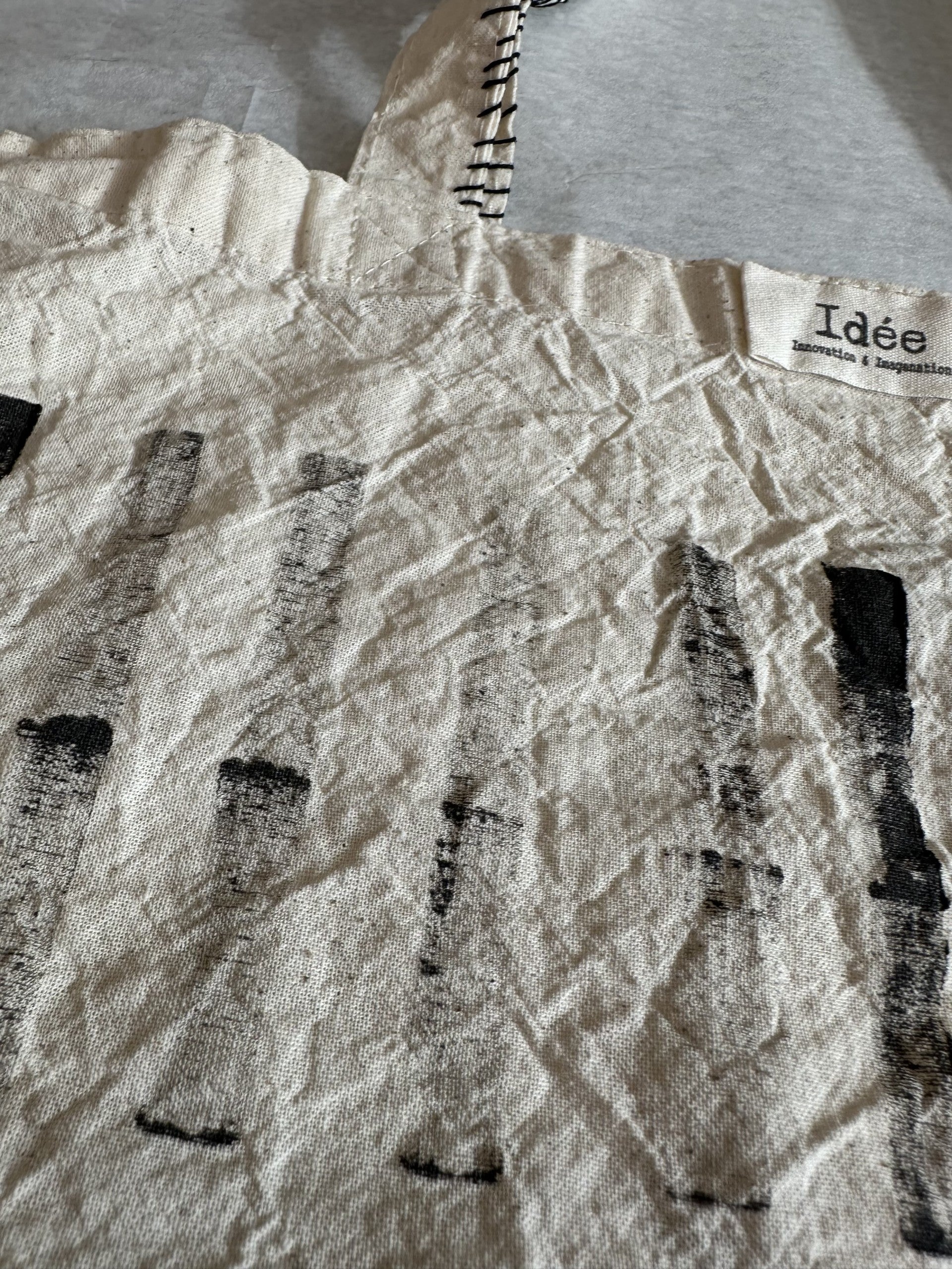כותנה טיבעית עם איור שחור