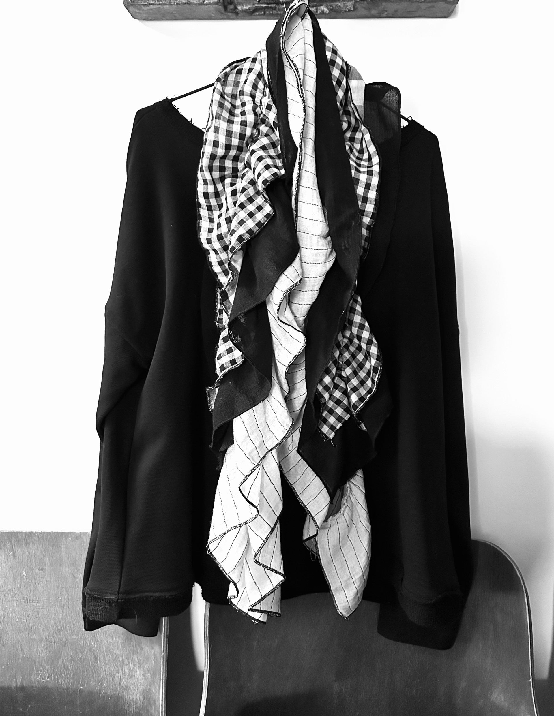 - צעיף רב שכבתי, עשוי משלוש שכבות של בדים רכים טבעיים ייחודיים.