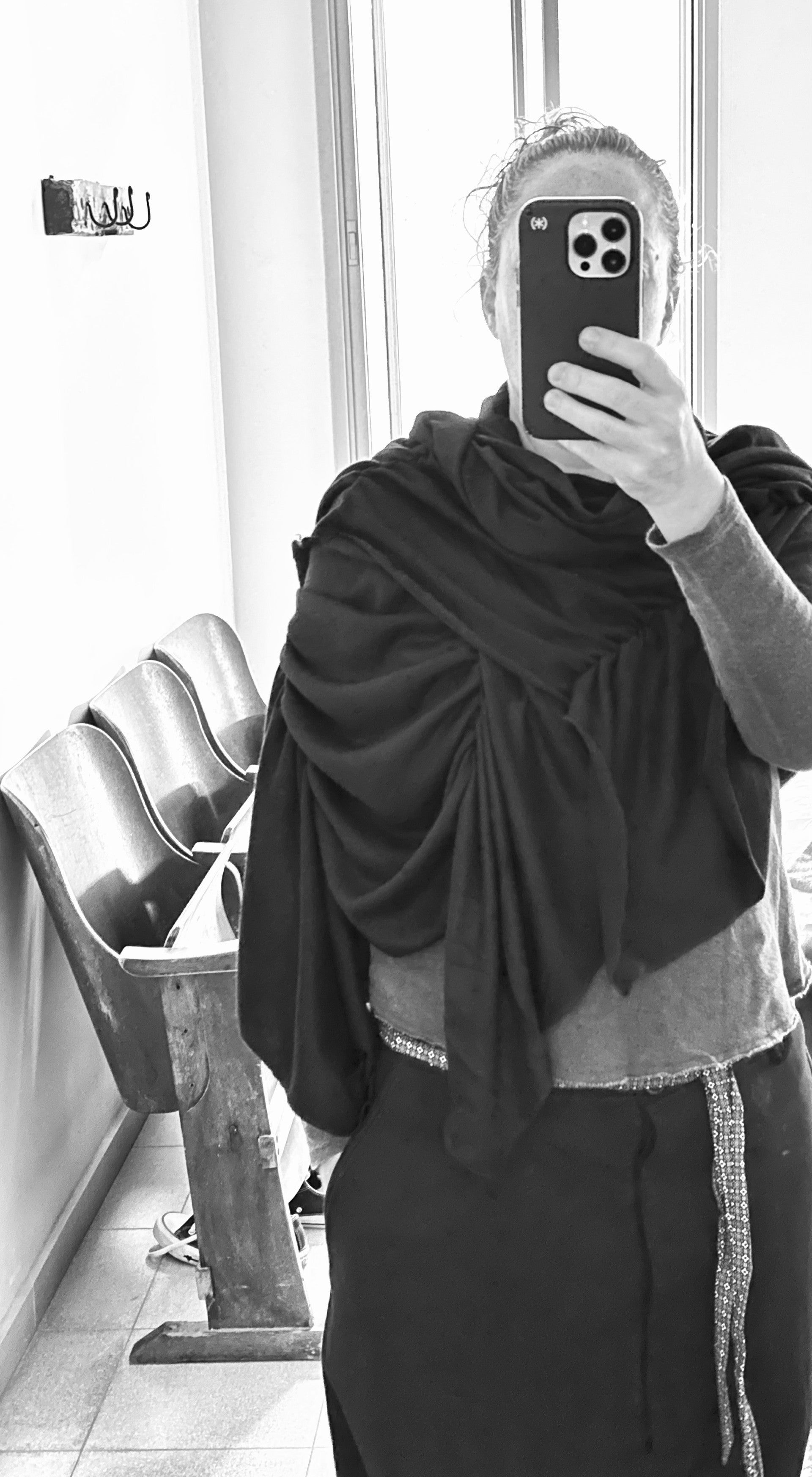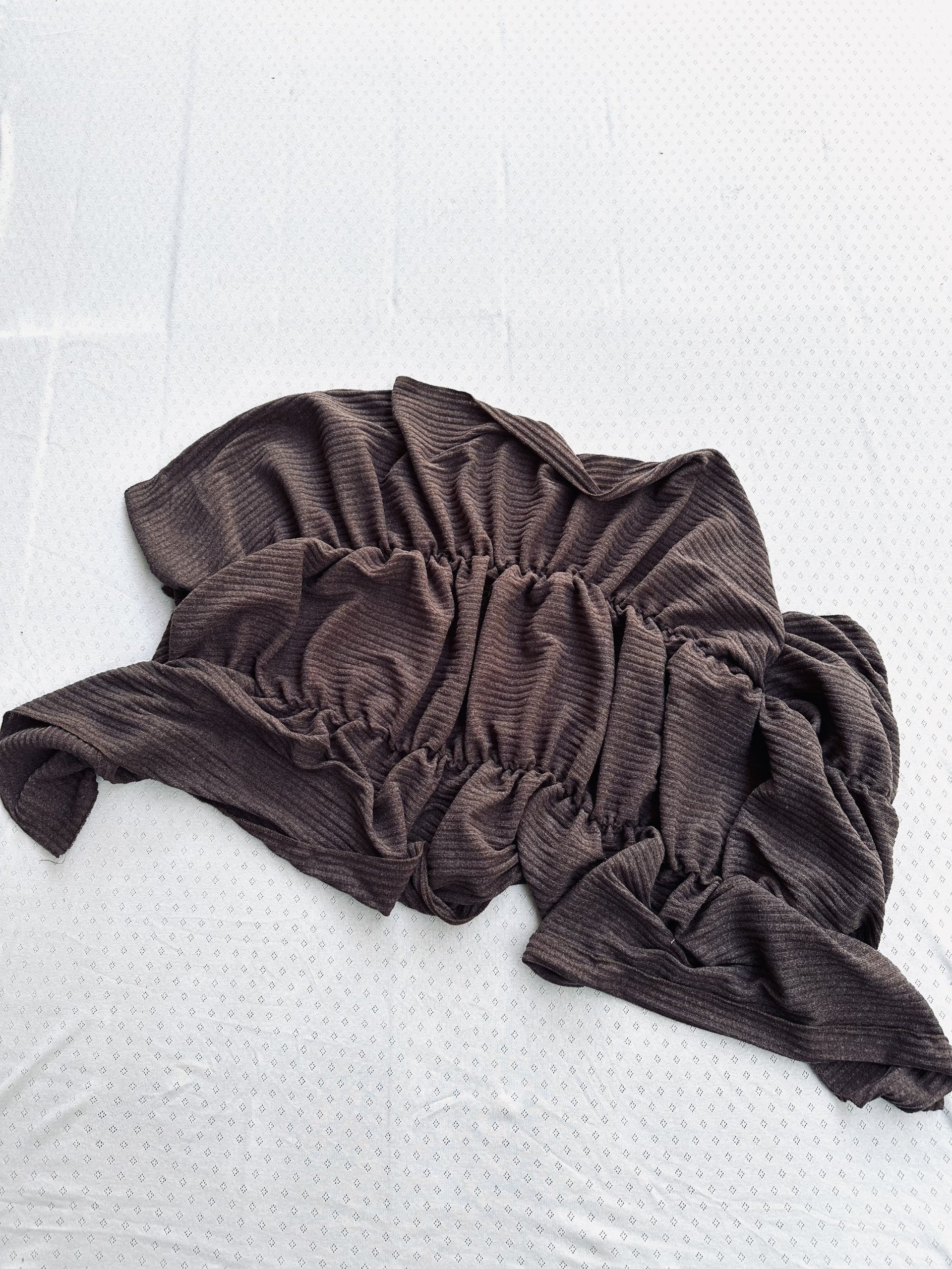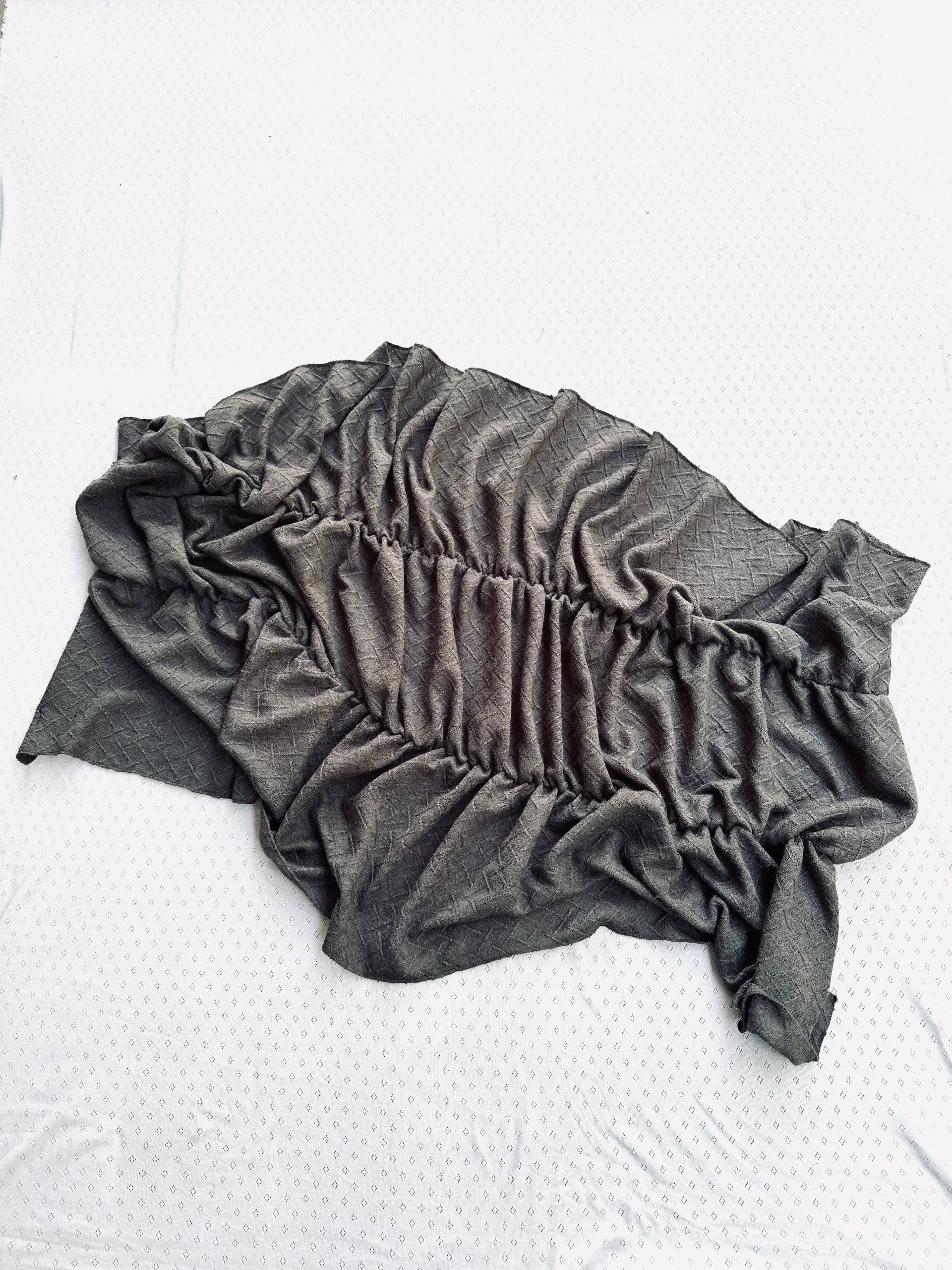 - שני תפרים אלסטיים במרכזו מעצבים את השל לכדי פריט רך ומחבק.