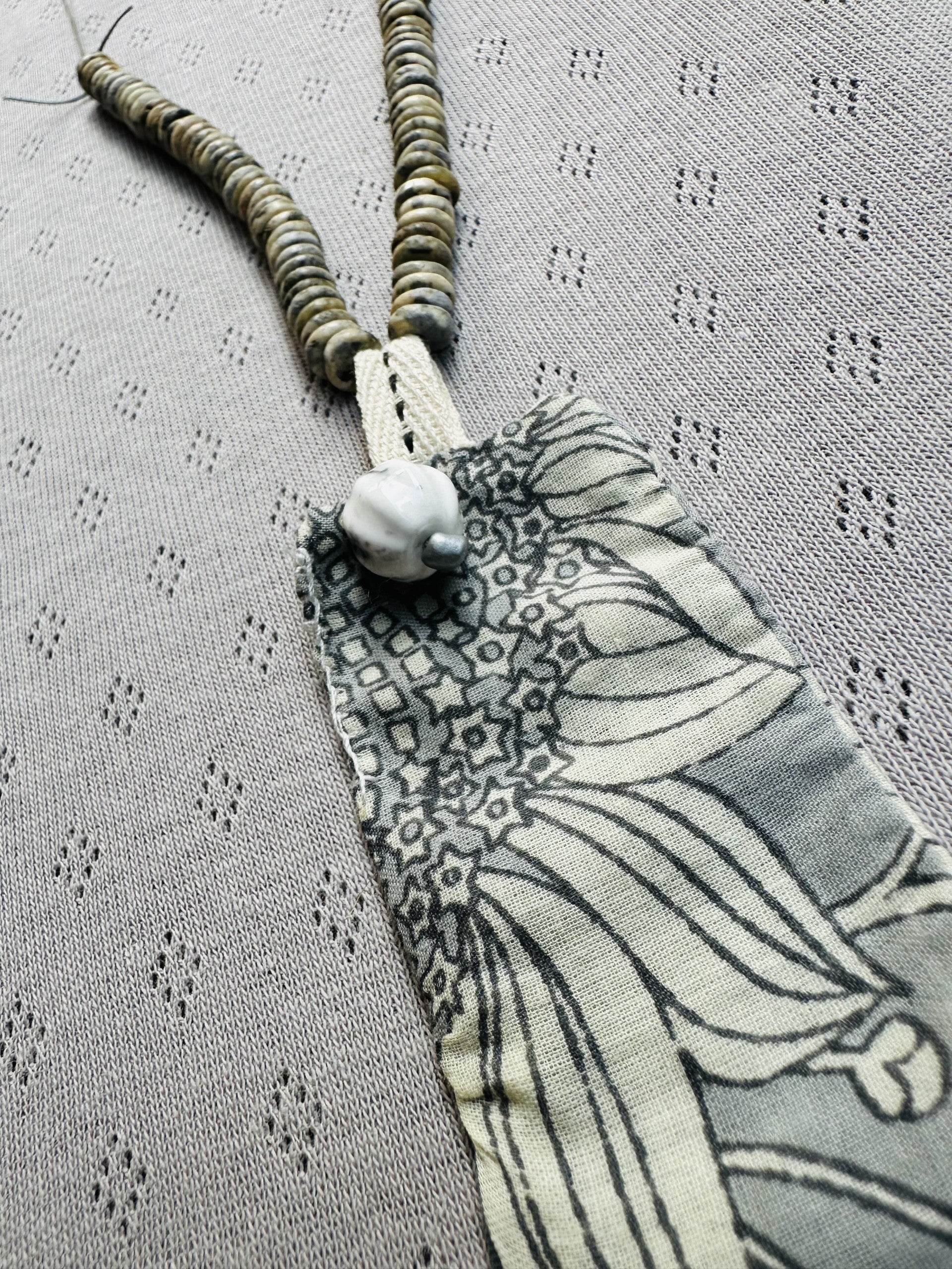 258118 זוהר מחרוזת חרוזים טיבעיים משולבת דיסקית בד