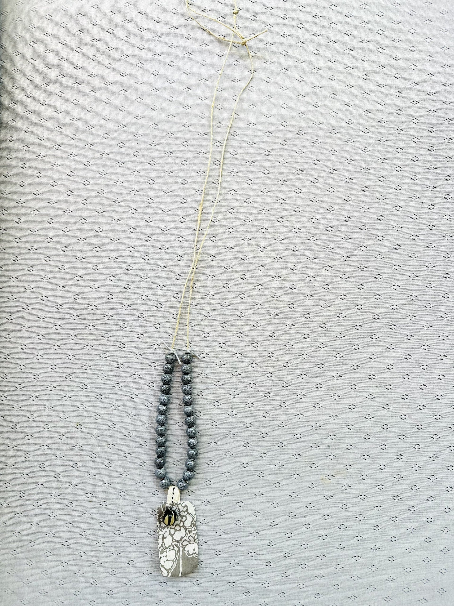 - דיסקית בד מונחת מאחורי חרוז יחודי, ומוסיפה מימד, מרקם ופרט פואטי, עם טביעת האצבע היחודית למותג.