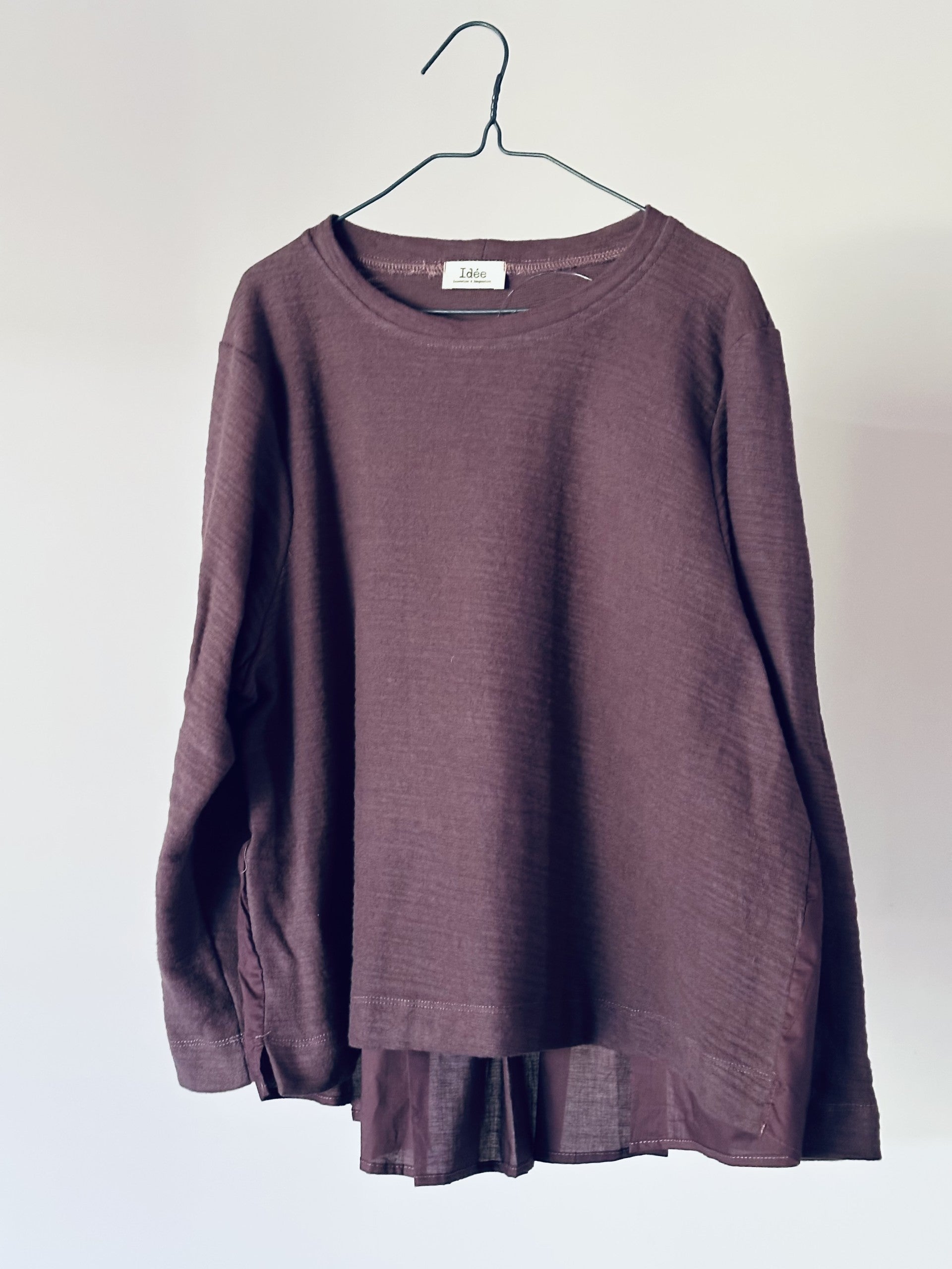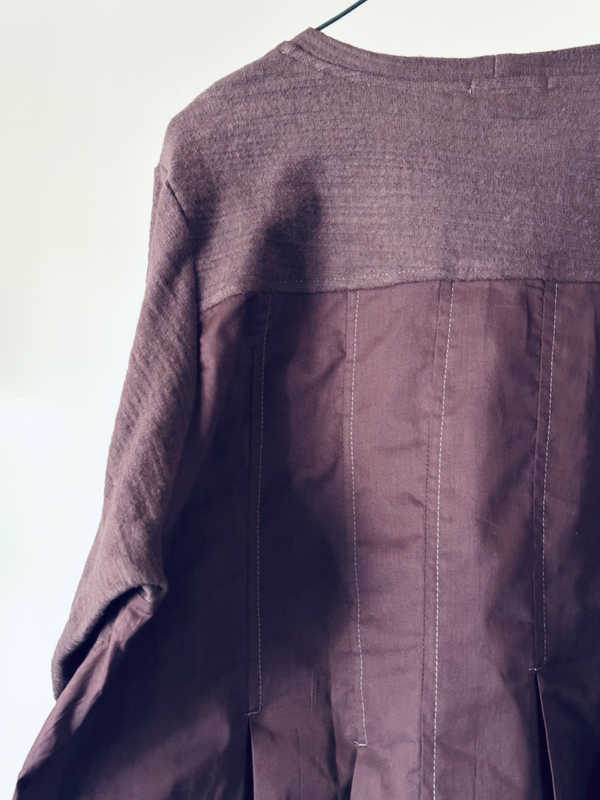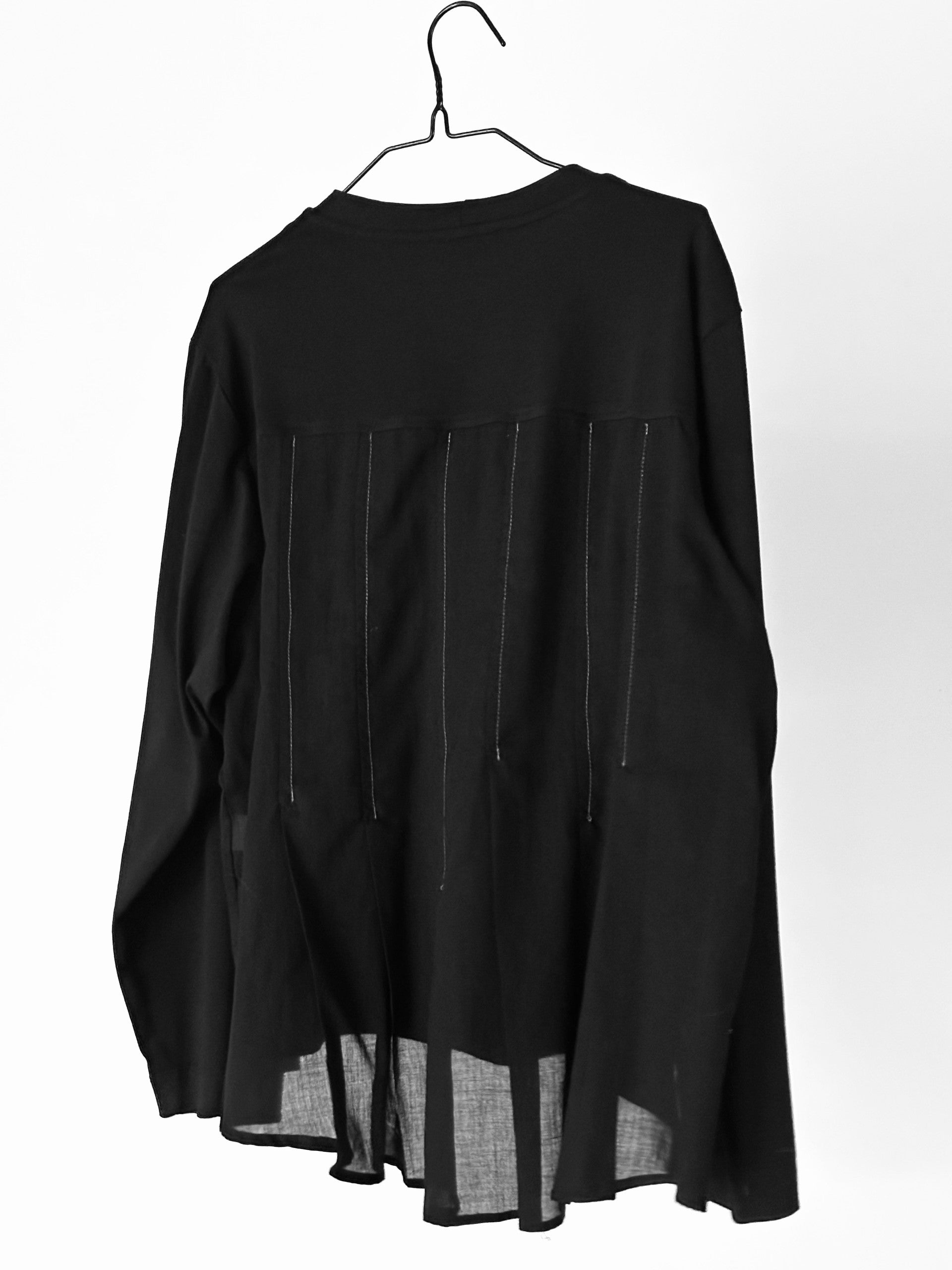 פריט מחבק ועם זאת מתוחכם ומוקפד, חולצה ייחודית זאת משלבת סריג כותנה רך עם גב כותנה ארוג, הכולל שורה של קפלים עדינים היוצרים נפח ותנועה עשוי סריג חמים ונעים במיוחד.