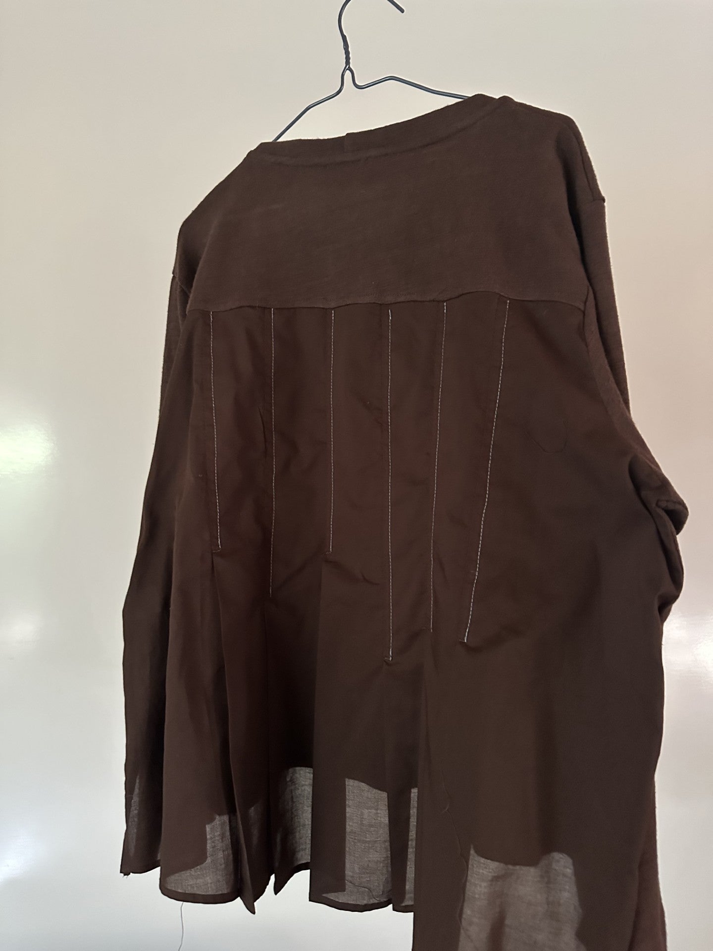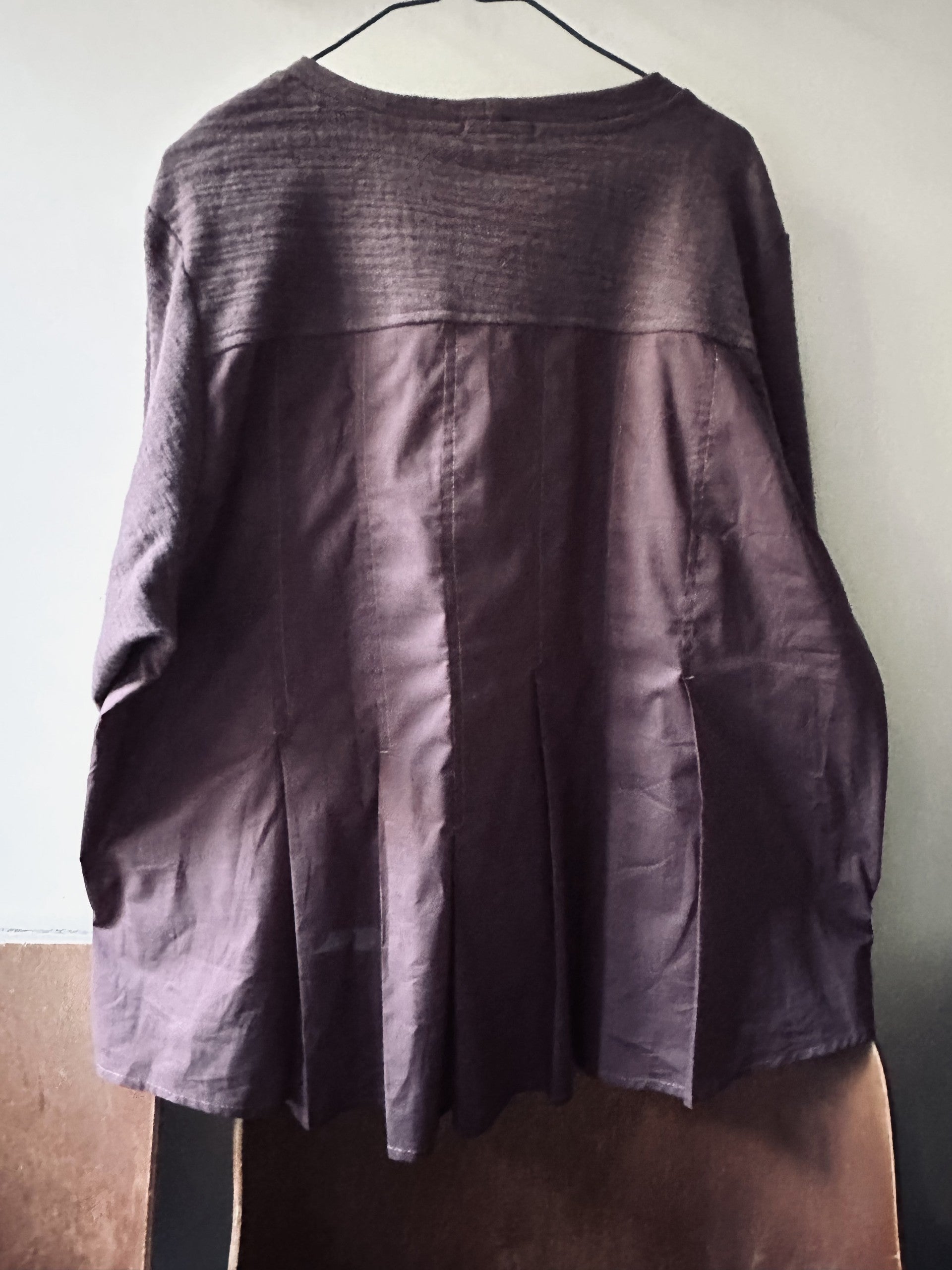 - חזית סריג כותנה מגורדת ומכובסת גב עשוי אריג כותנה מדוגם בקפלים מתופרים.