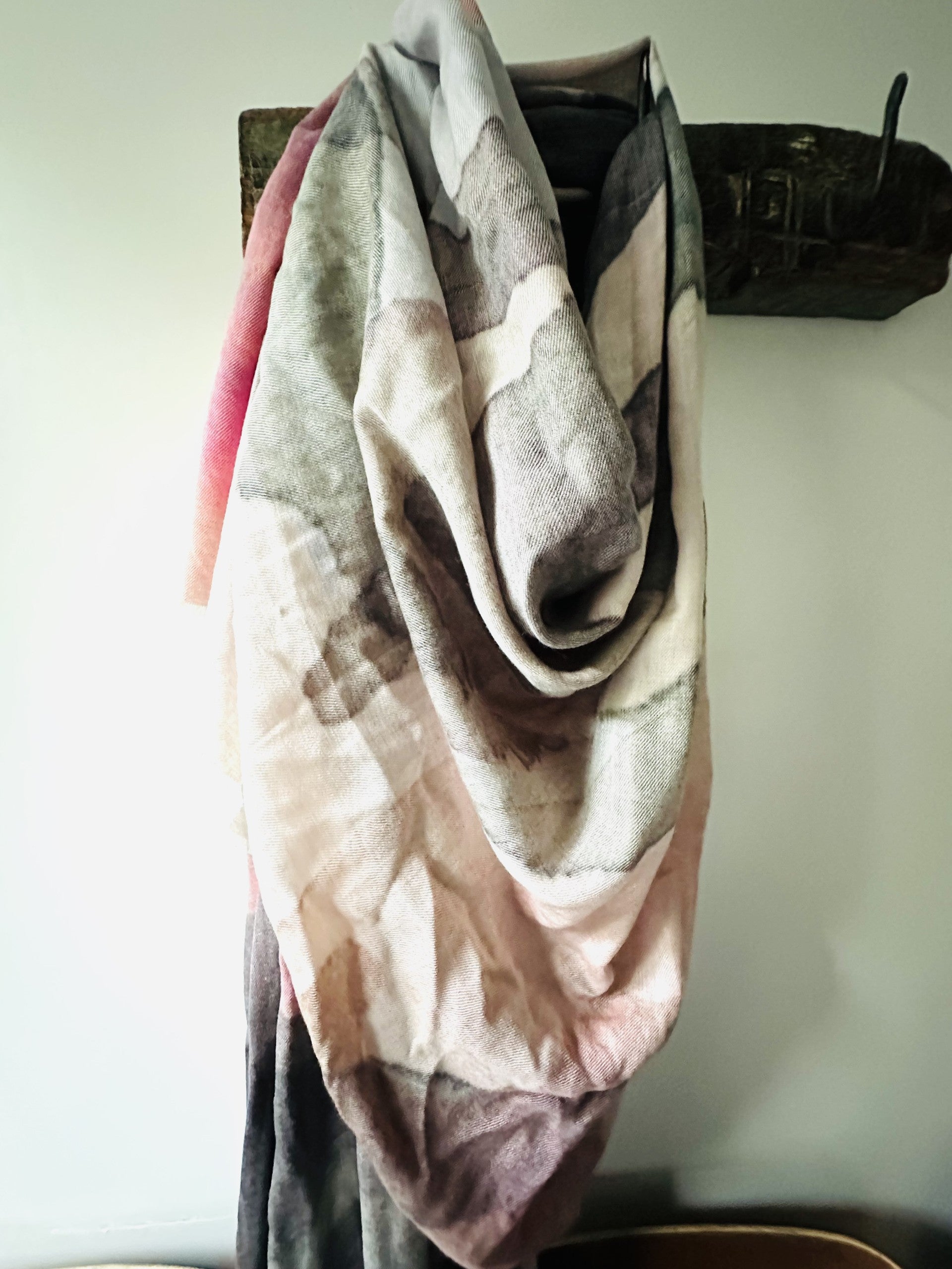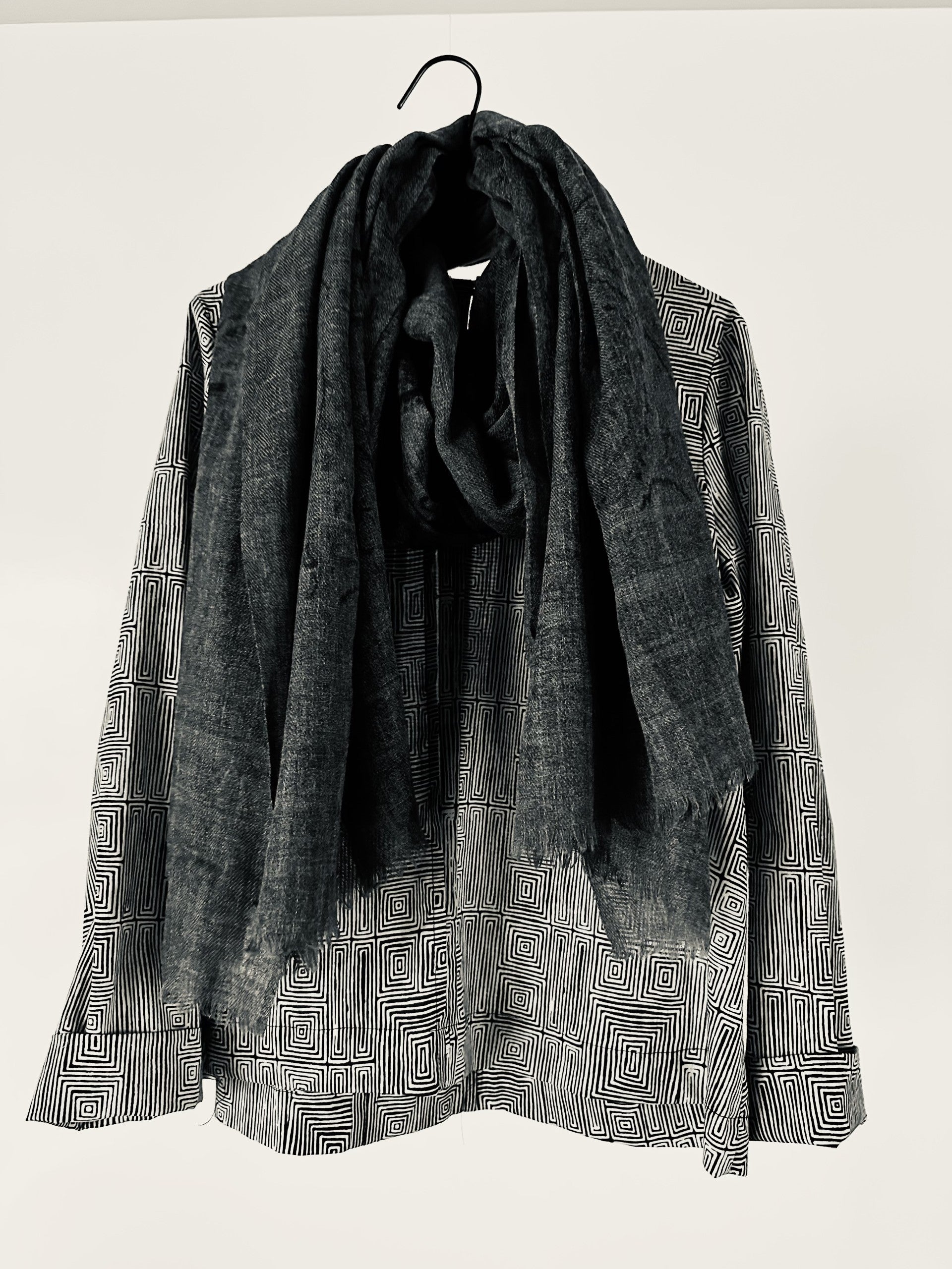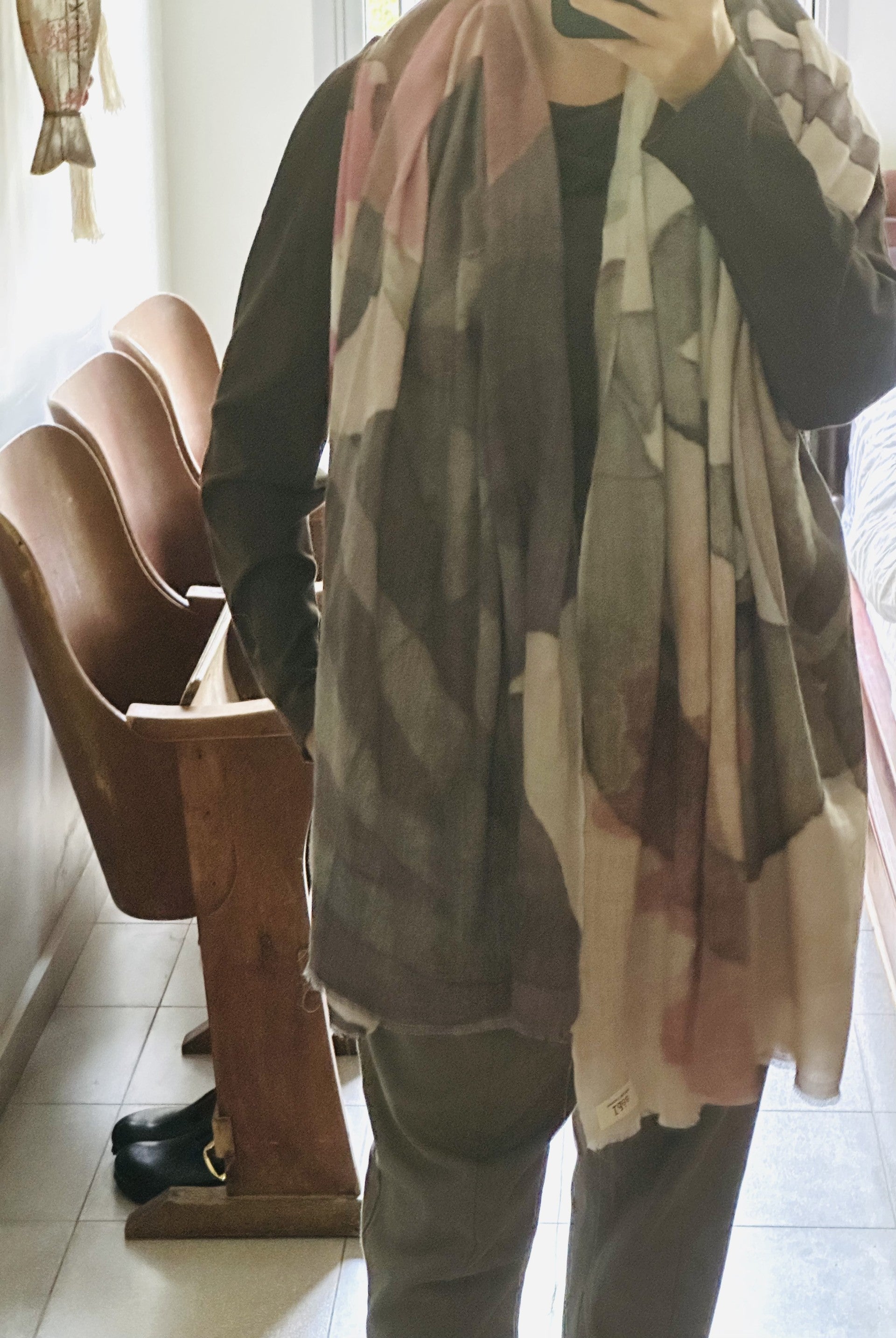 - צעיף צמר בתולי גדול במיוחד, עשוי מצמר רך ונושם, שנועד להיות פרקטי ומלא אישיות.