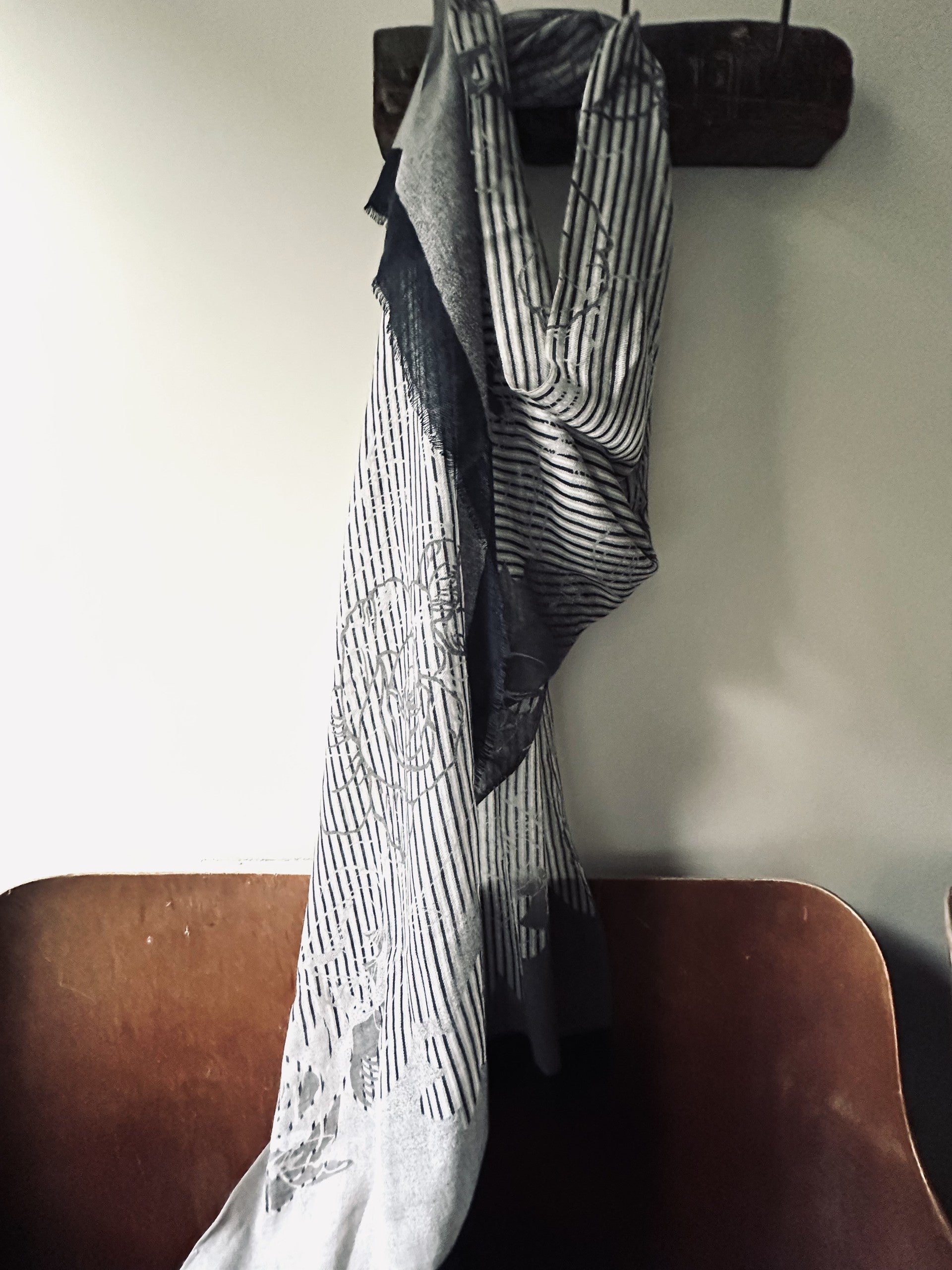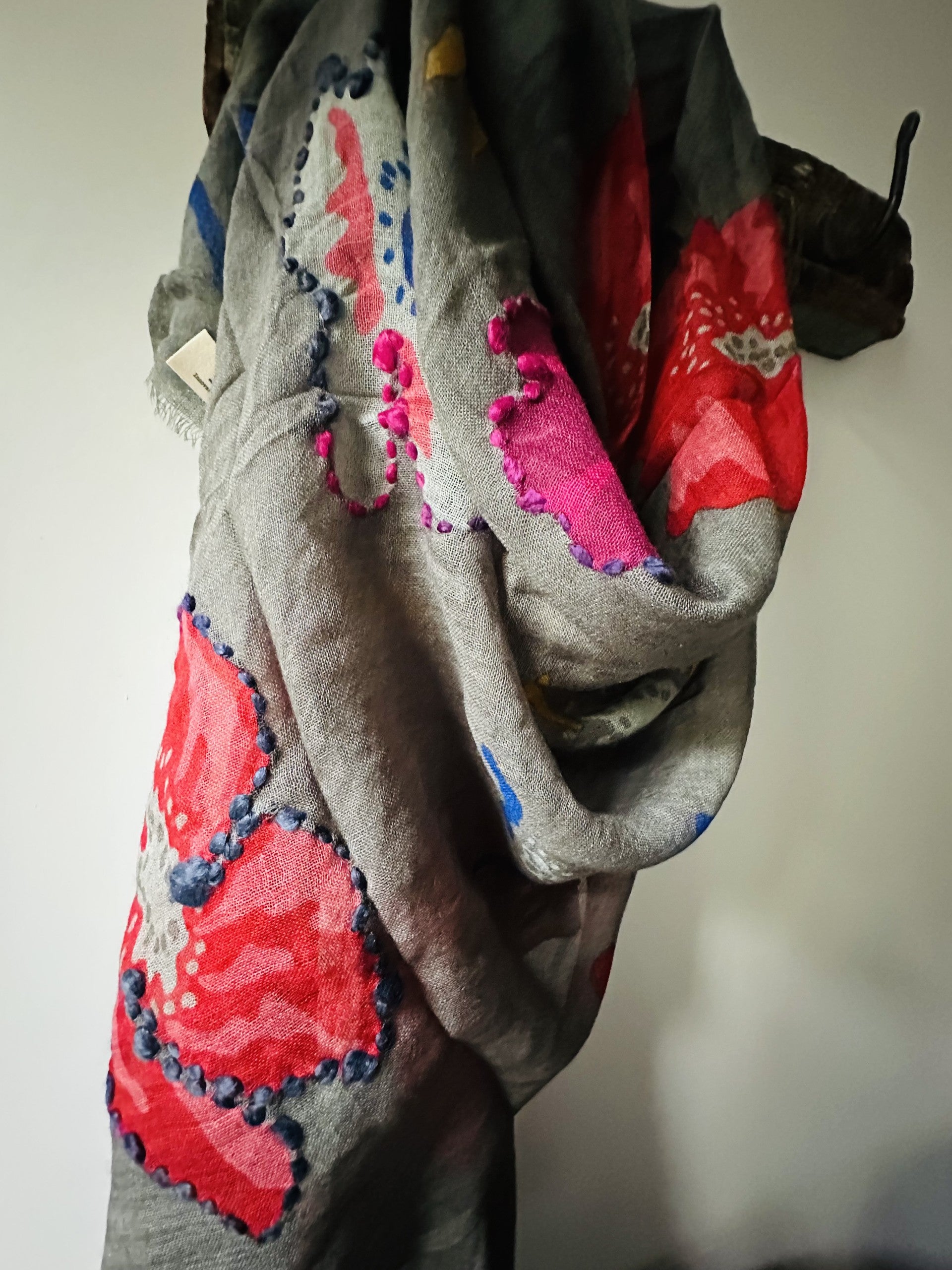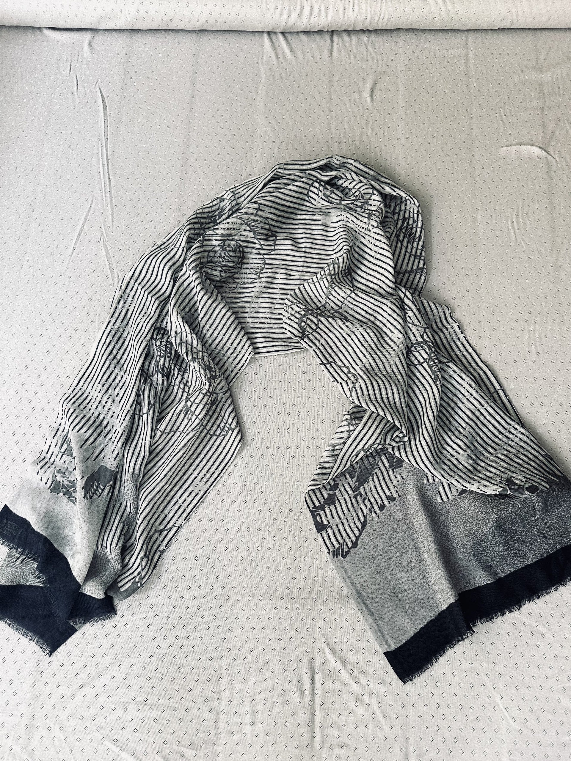 - צעיף צמר בתולי גדול במיוחד, עשוי מצמר רך ונושם, שנועד להיות פרקטי ומלא אישיות.